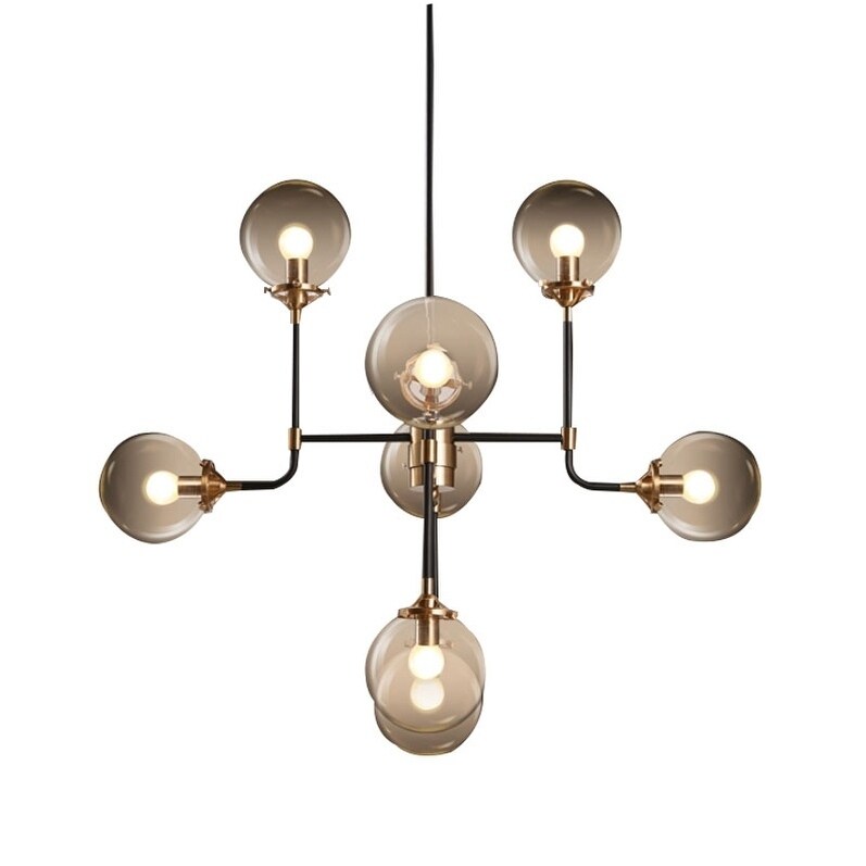 Black/brass with clear glass Iron pendant 8 Bulbs"