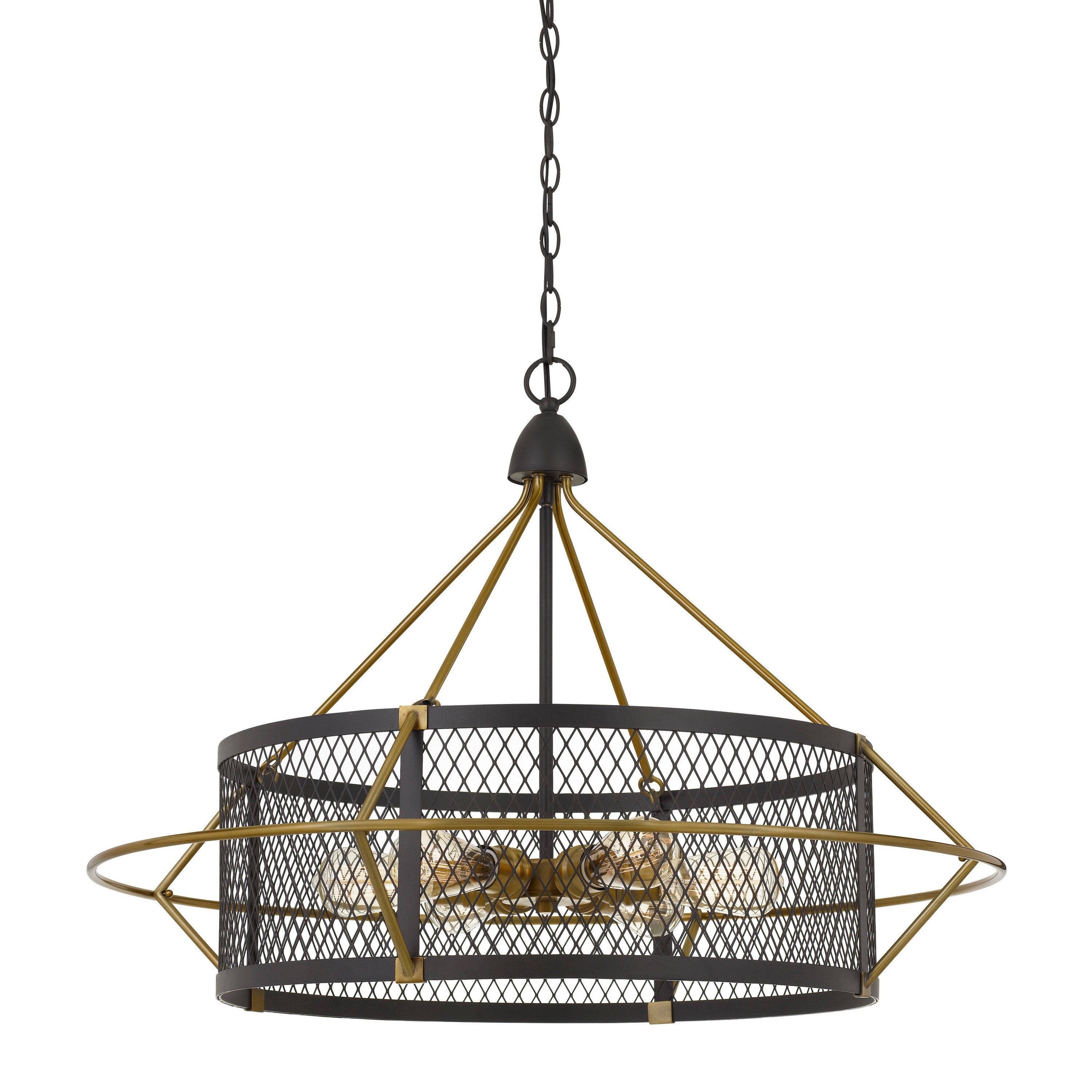 6 Bulb Metal Chandelier with Round Mesh Frame, Black and Gold