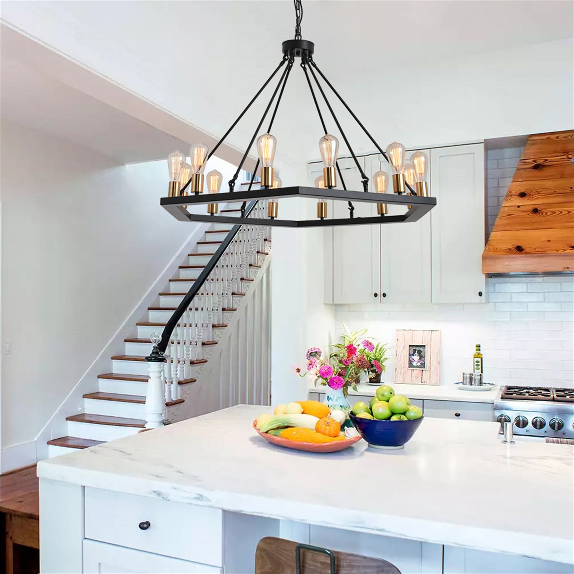 Chandelier Hexagonal Black 12 Bulbs, Bulb not Included