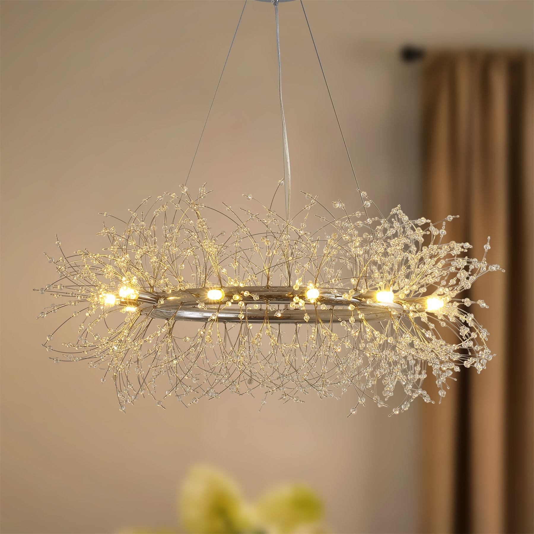 Modern Firework Crystal Chandelier for Dining Room and Living Room Bulb Included