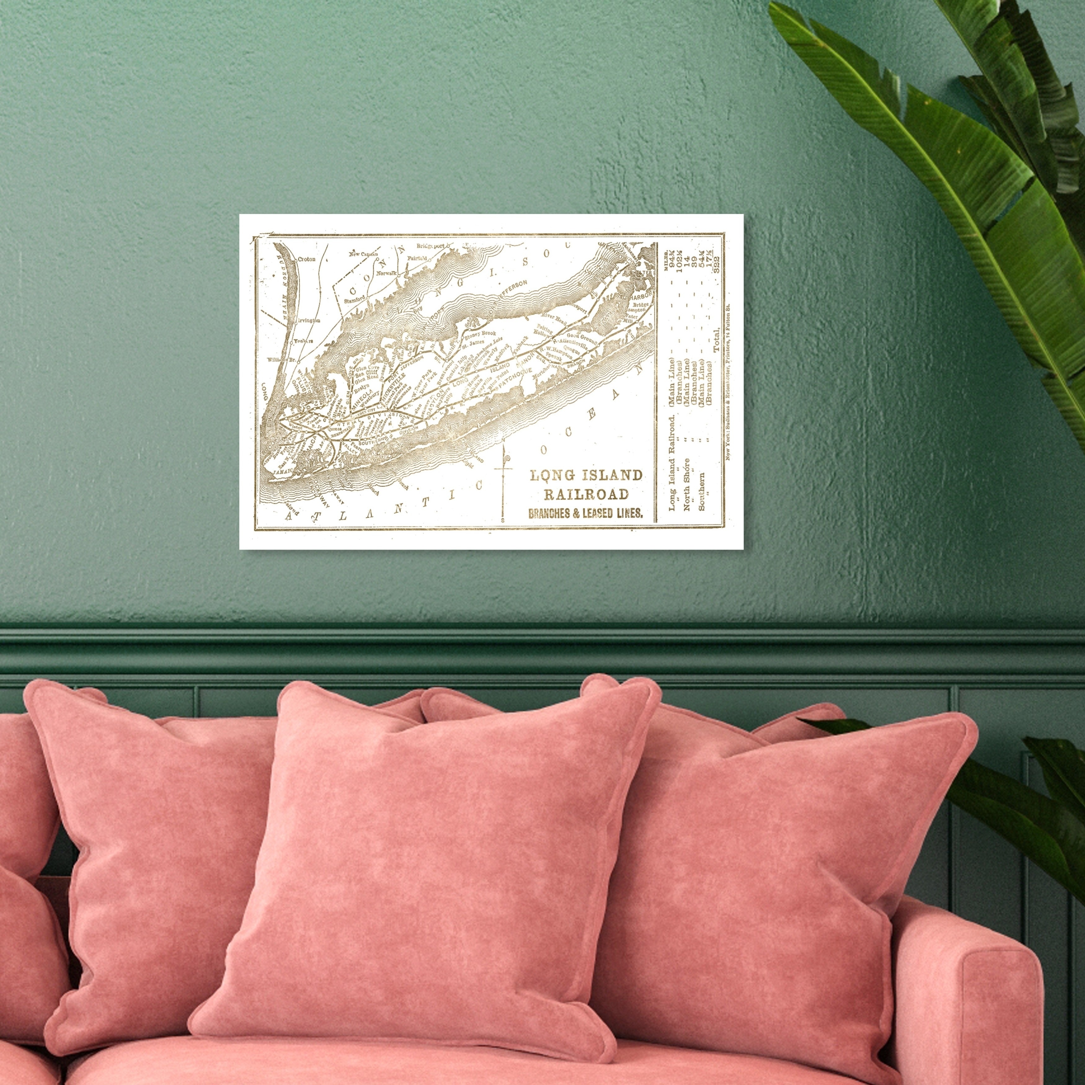 Oliver Gal 'Long Island Rail Road Map Gold' Maps and Flags Wall Art Canvas Print - Gold, White