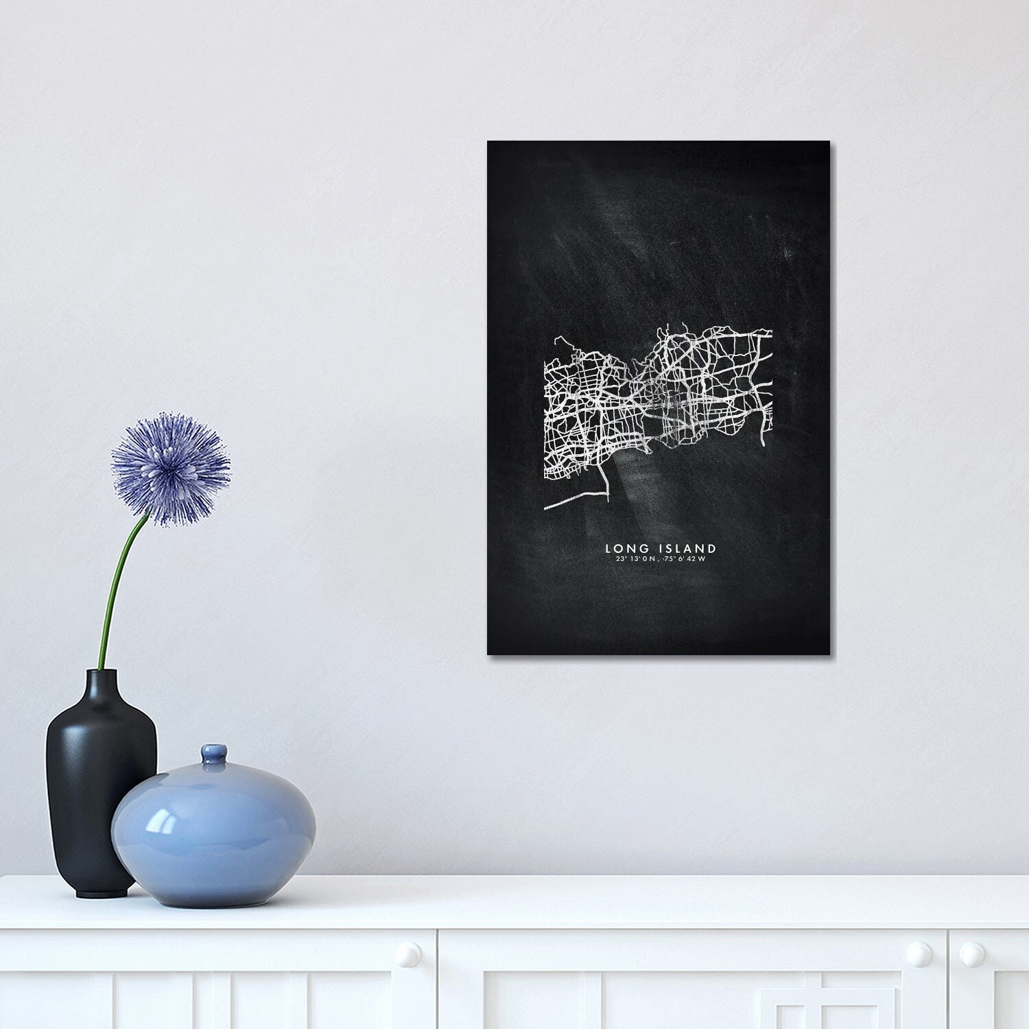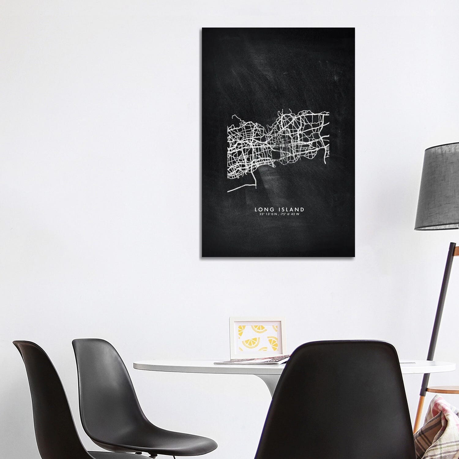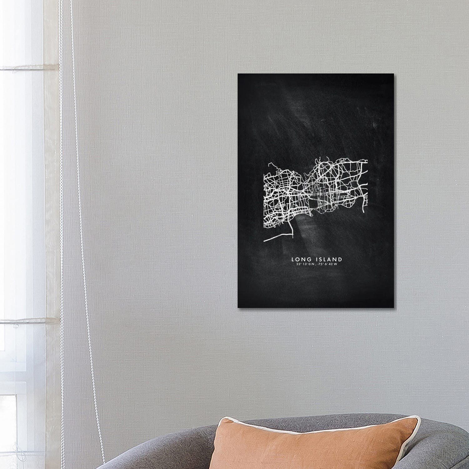 iCanvas "Long Island City Map Chalkboard Style" by WallDecorAddict Canvas Print
