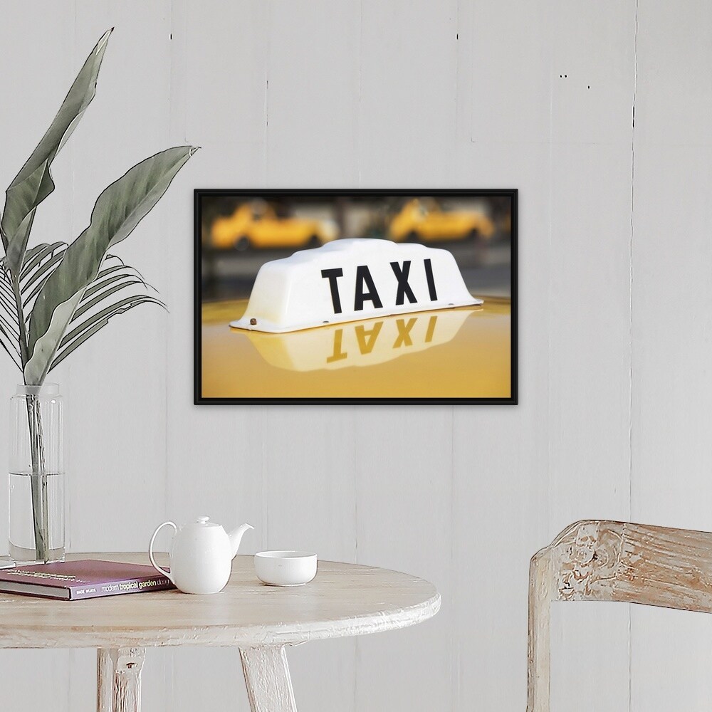 "USA, New York, Long Island, New York City, Close up of taxi sign" Black Float Frame Canvas Art