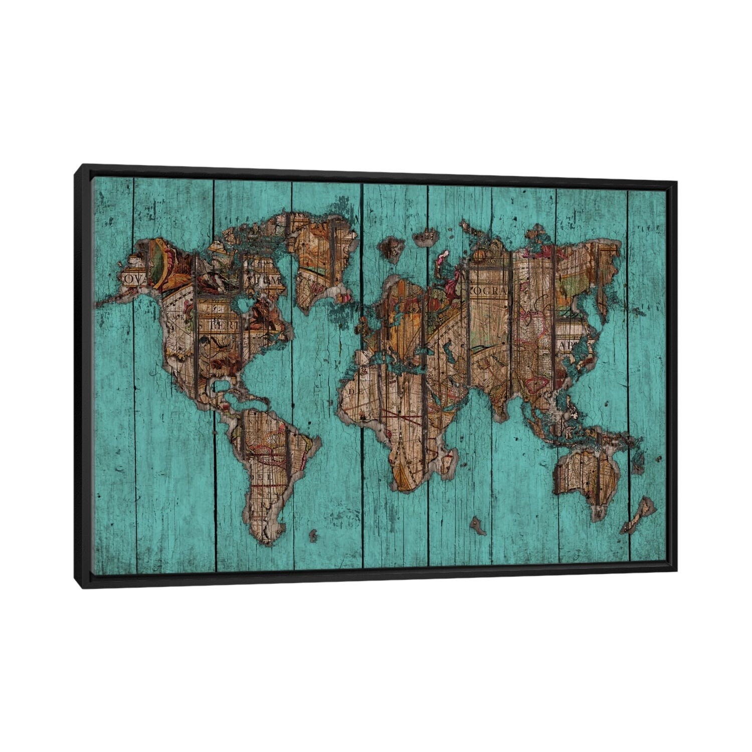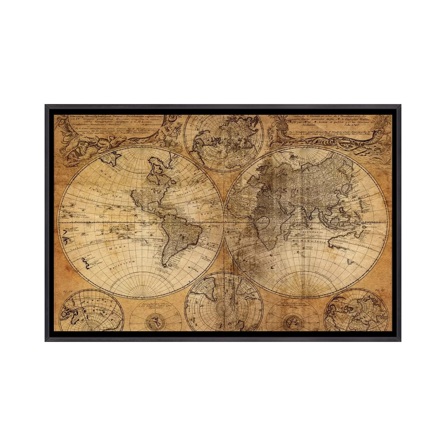 iCanvas "Old Times (World Map) I" by Diego Tirigall Framed