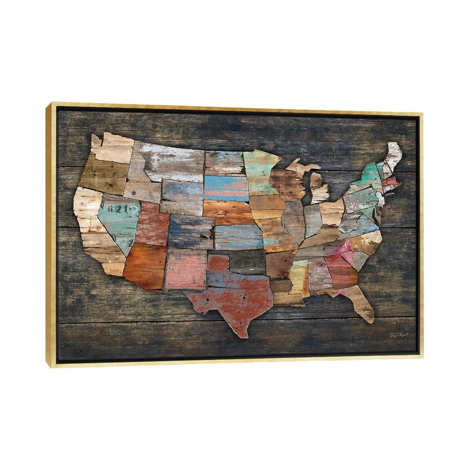 iCanvas "USA Map II" by Diego Tirigall Framed