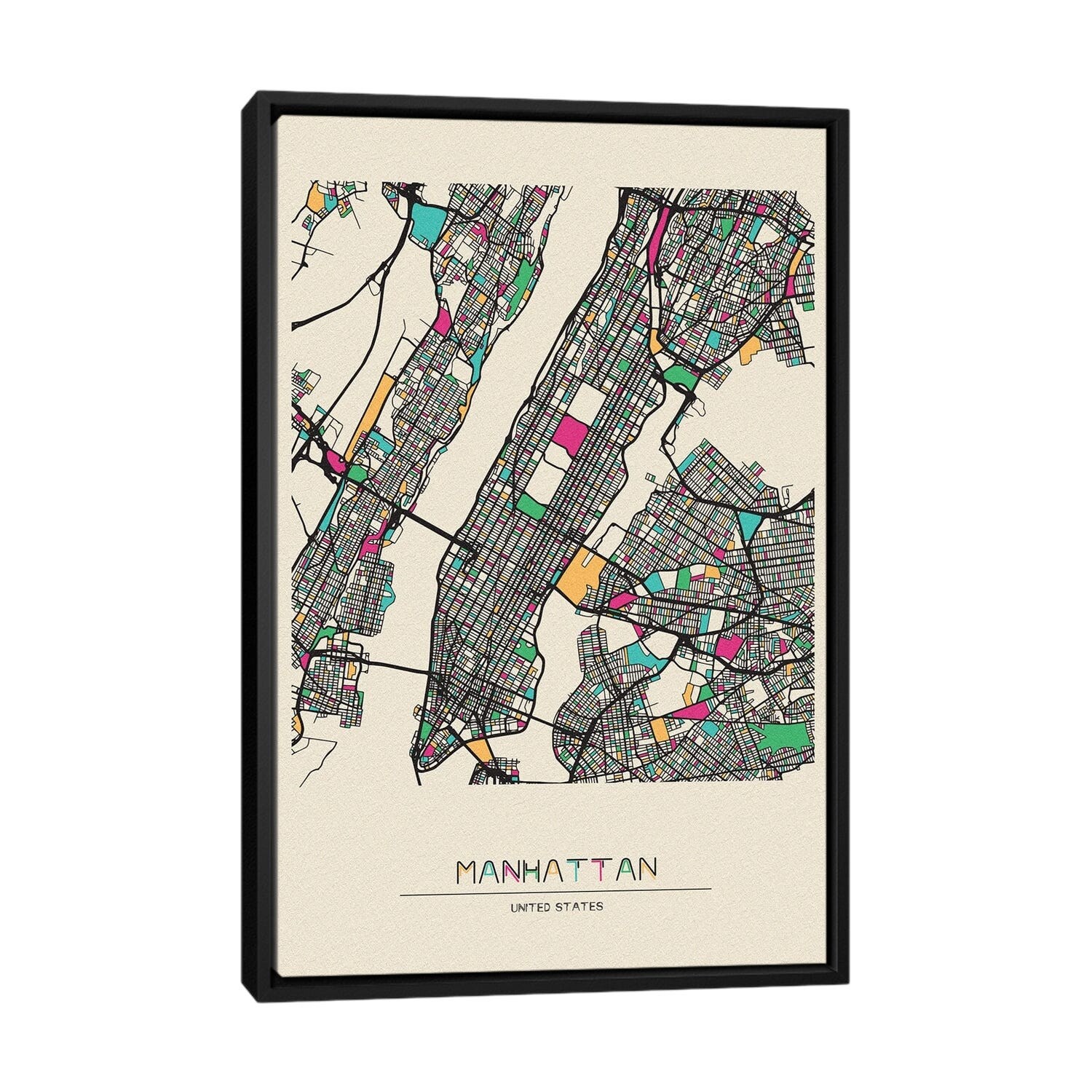 iCanvas "Manhattan, New York Map" by Ayse Deniz Akerman Framed