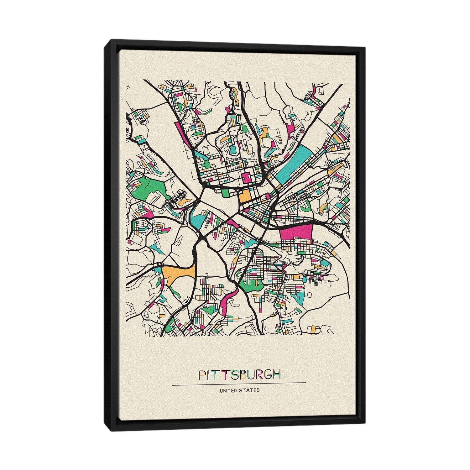 iCanvas "Pittsburgh, Pennsylvania Map" by Ayse Deniz Akerman Framed