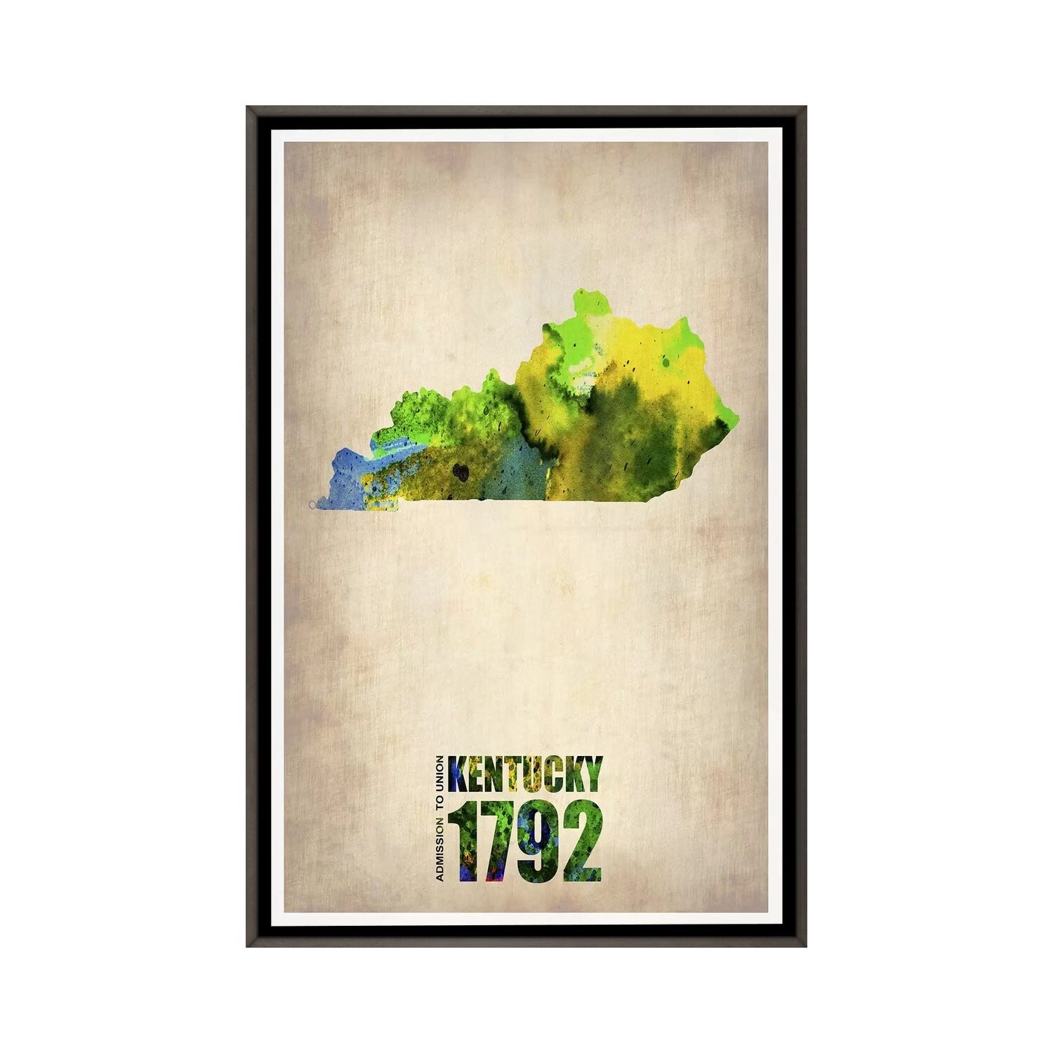 iCanvas "Kentucky Watercolor Map" by Naxart Framed