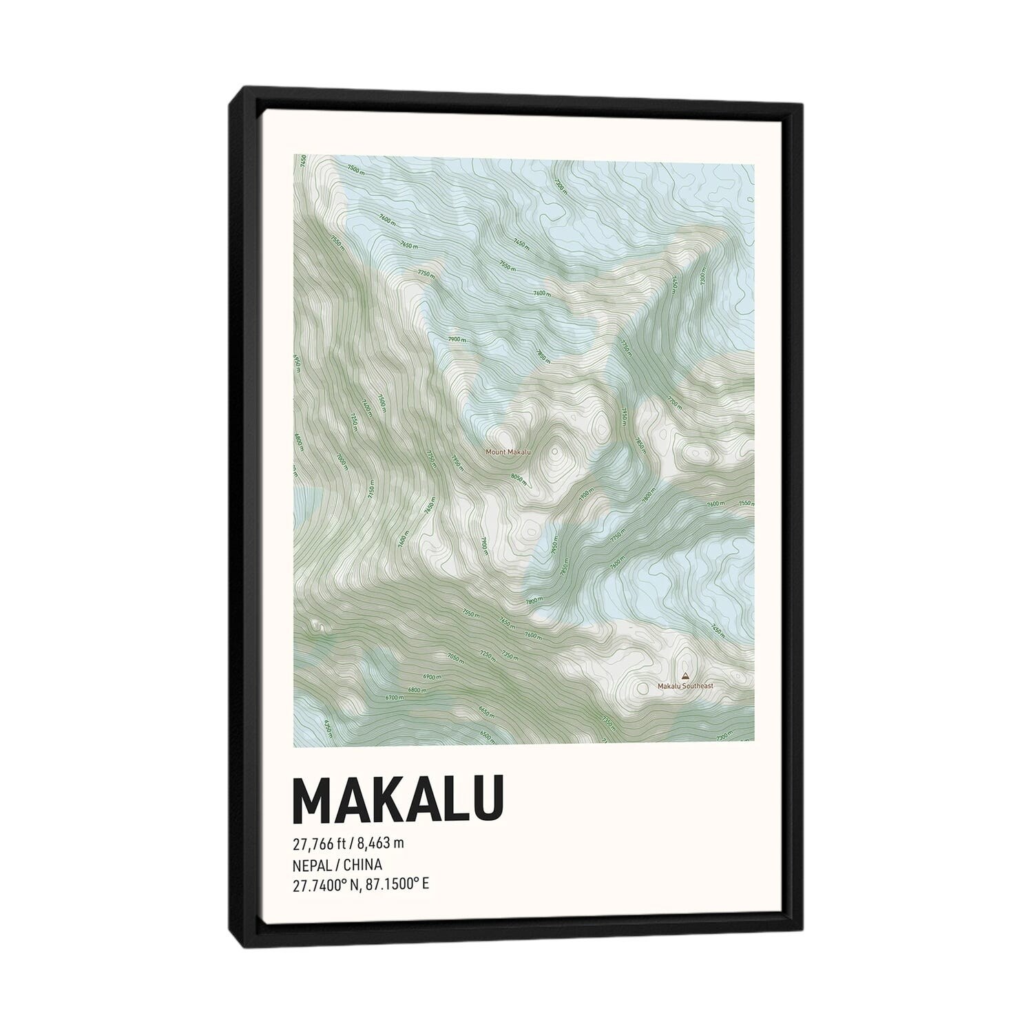 iCanvas "Makalu Topographic Map" by avesix Framed
