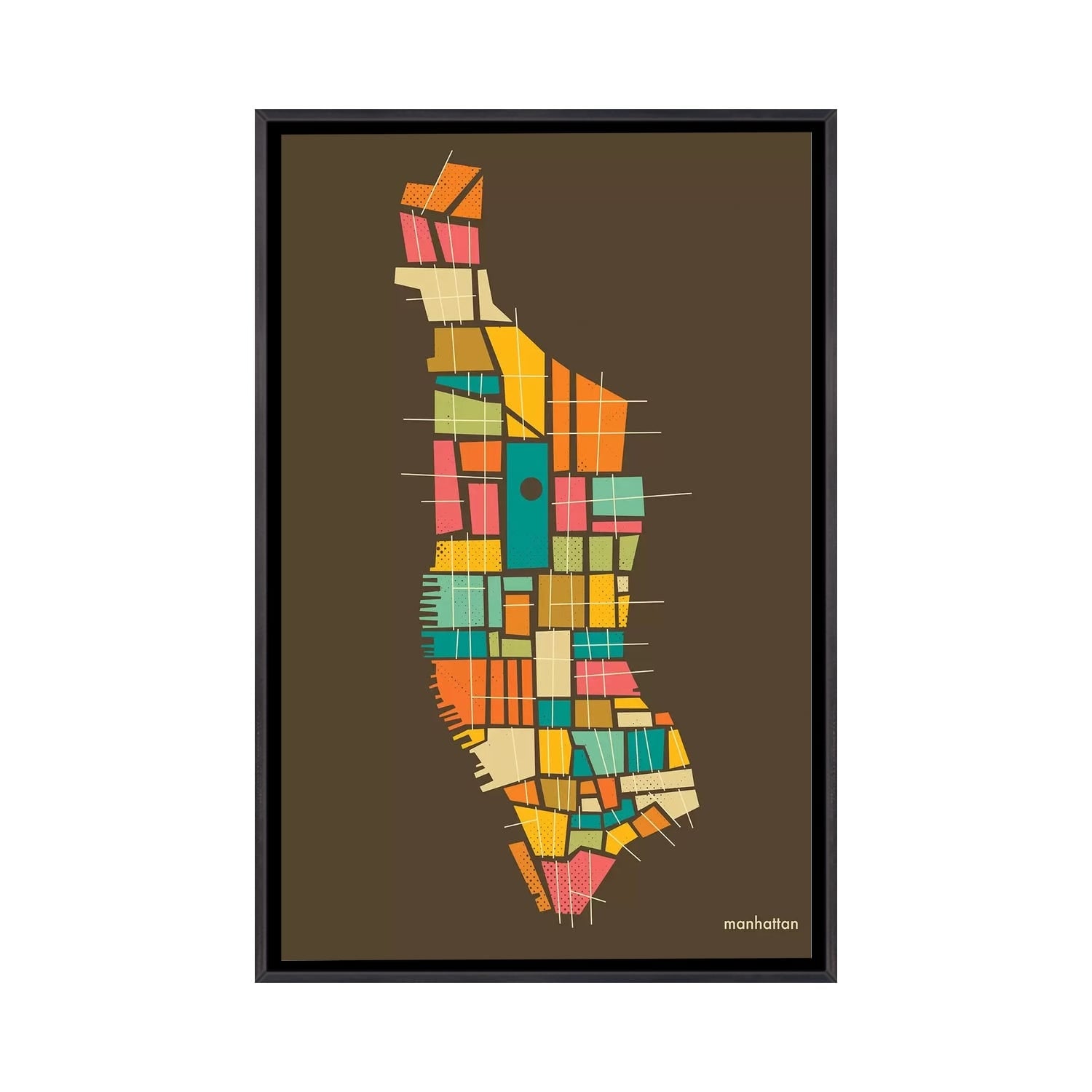 iCanvas "Abstract Manhattan Neighborhood Map" by Jazzberry Blue Framed