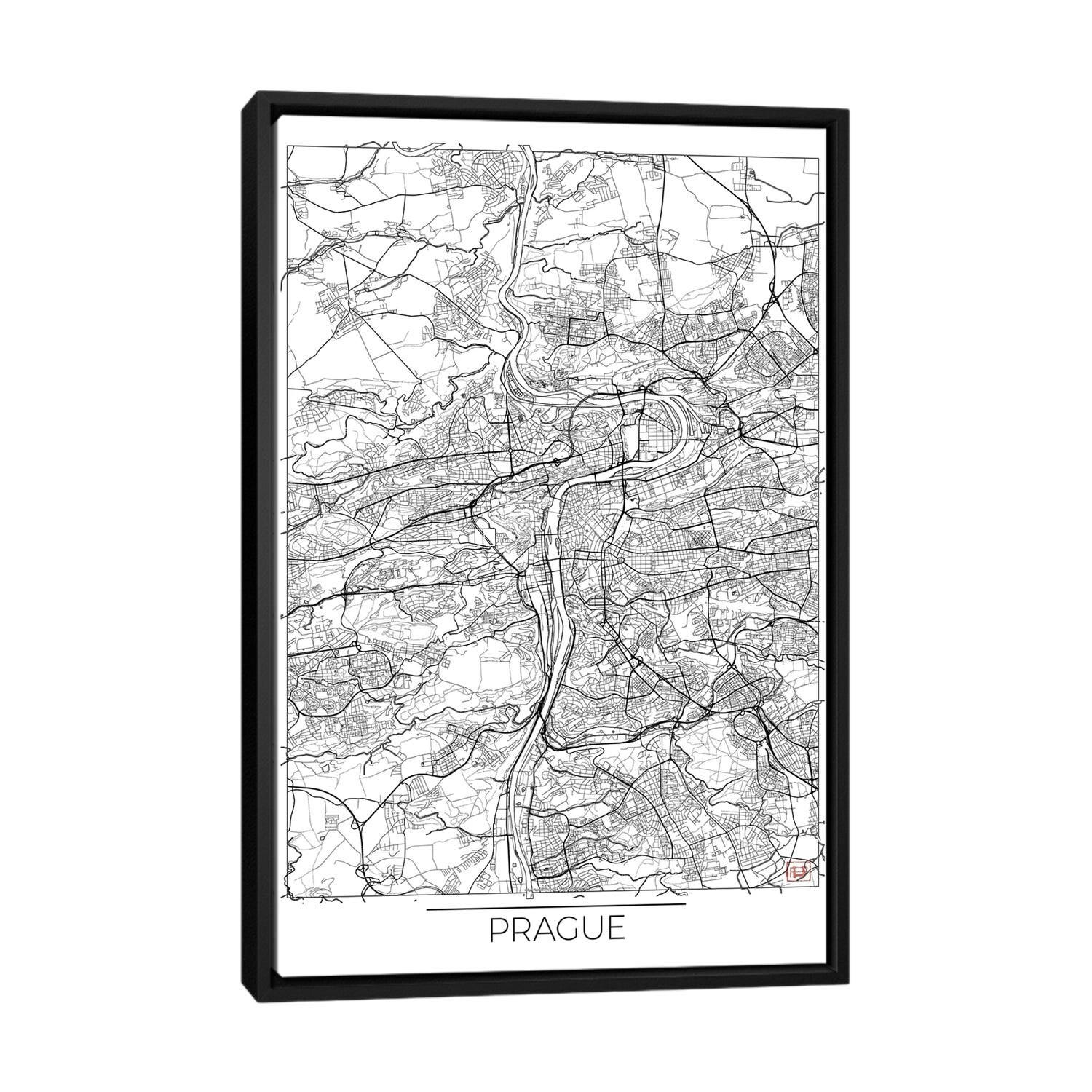 iCanvas "Prague Minimal Urban Blueprint Map" by Hubert Roguski Framed Canvas Print