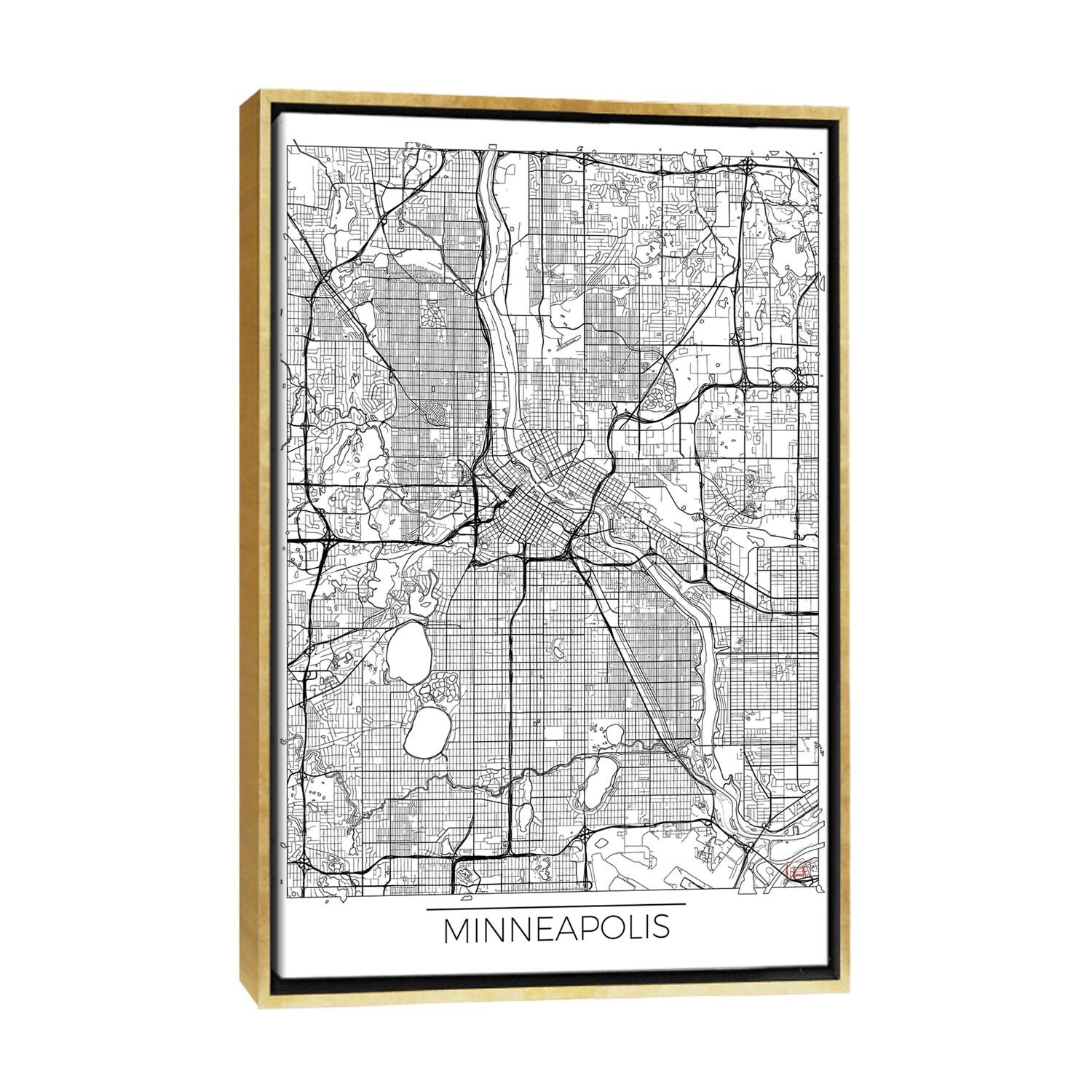 iCanvas "Minneapolis Minimal Urban Blueprint Map" by Hubert Roguski Framed Canvas Print