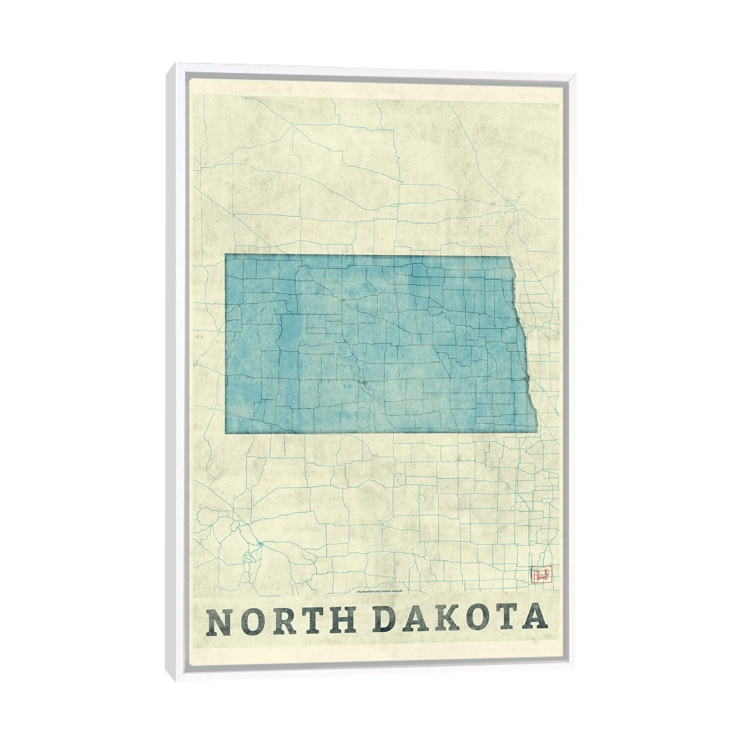 iCanvas "North Dakota Map" by Hubert Roguski Framed