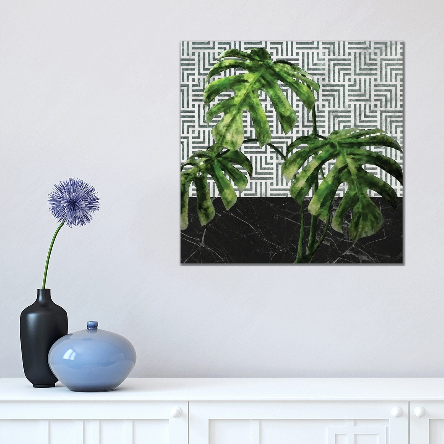 iCanvas "Monstera Leaves on Black Marble and Tiles" by amini54 Canvas Print