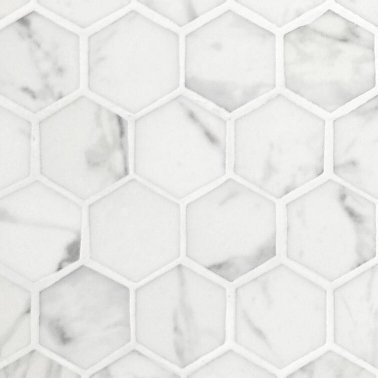 11.7" W x 10.2" Hexagon Glass/Marble Mosaic Sheet