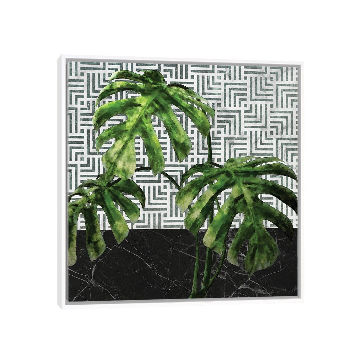 iCanvas "Monstera Leaves on Black Marble and Tiles" by amini54 Framed Canvas Print
