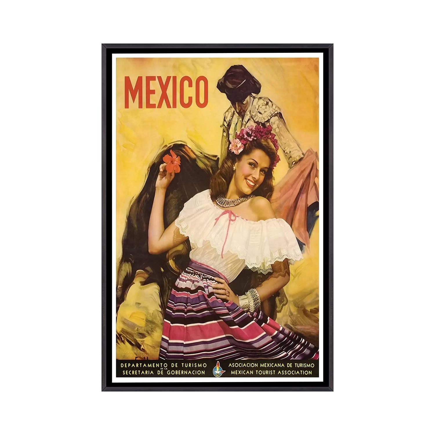 iCanvas "Mexico- Tourism I" by Unknown Artist Framed