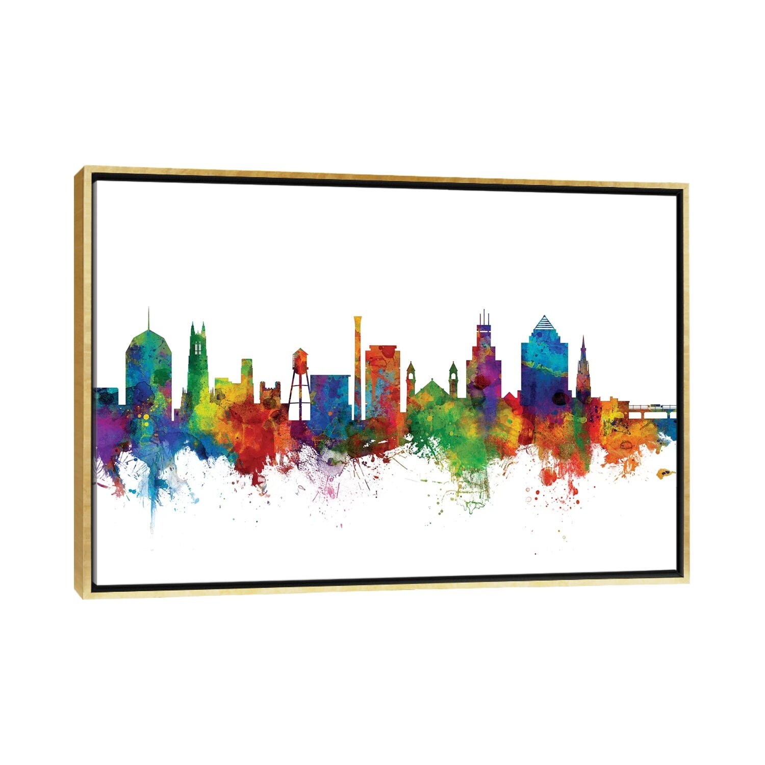 iCanvas "Oakland California Skyline Rainbow" by Michael Tompsett Framed