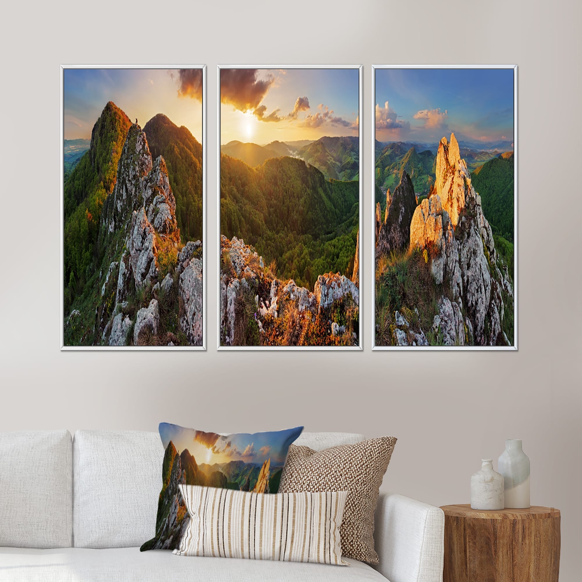 Designart "Panorama Mountains Slovakia" Landscape Framed Canvas Wall Art Set of 3 - 4 Colors of Frames