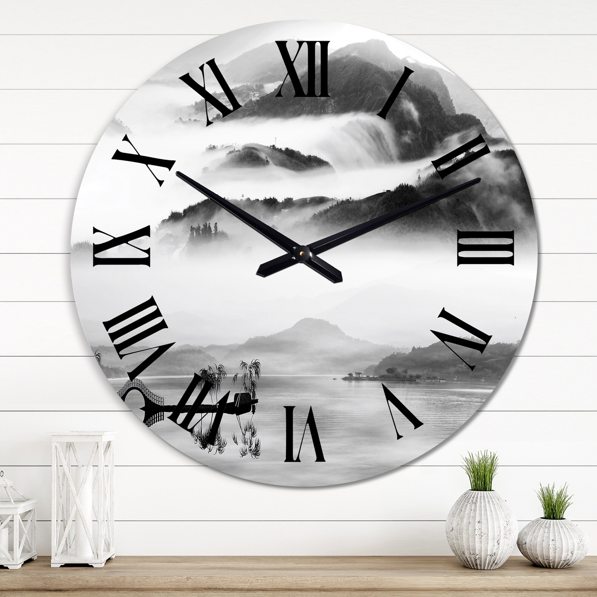 Designart 'Chinese Monochrome Mountain Landscape' Traditional wall clock