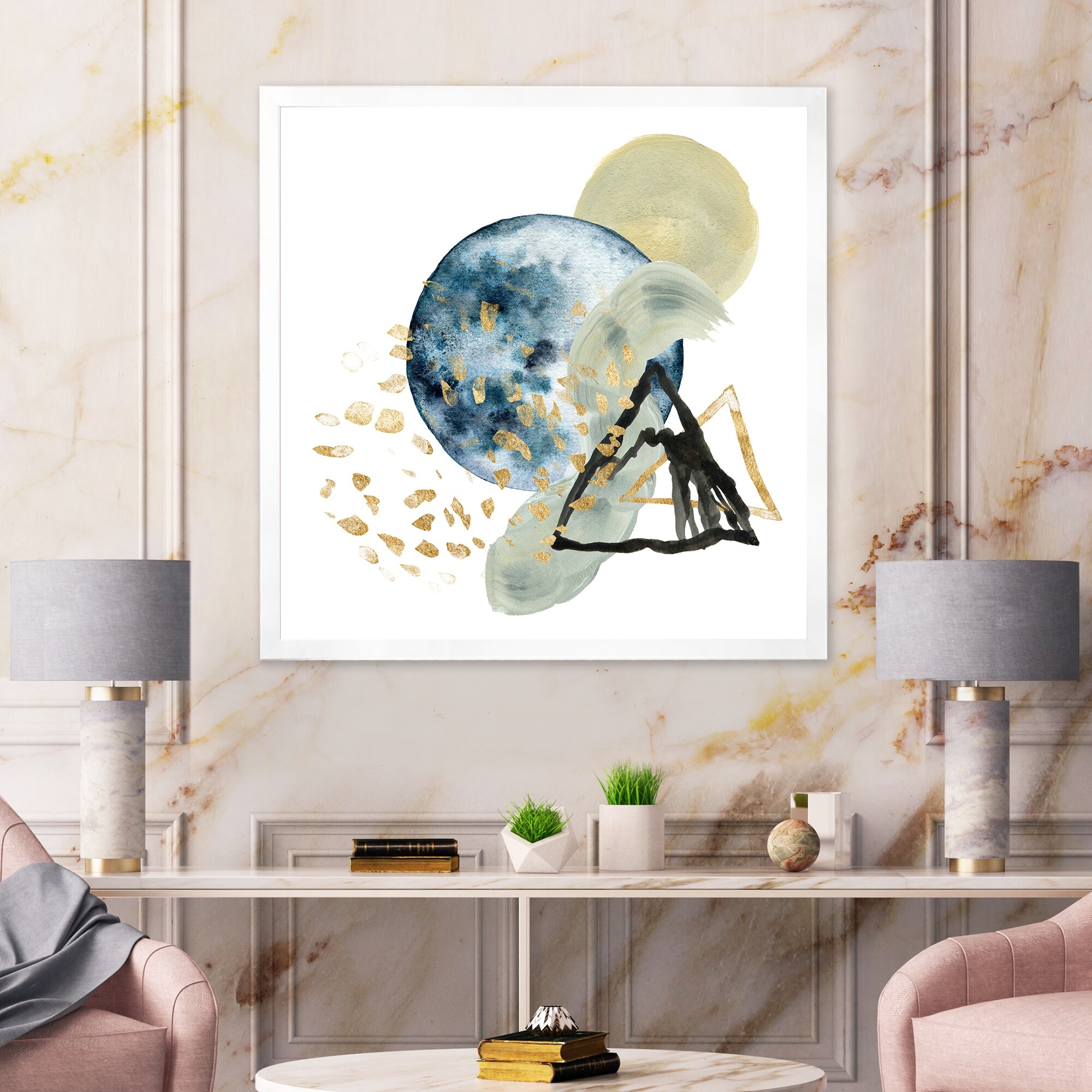 Designart "Landscape of Dark Blue Mountains & Gold Strokes I" Modern Framed Art Print