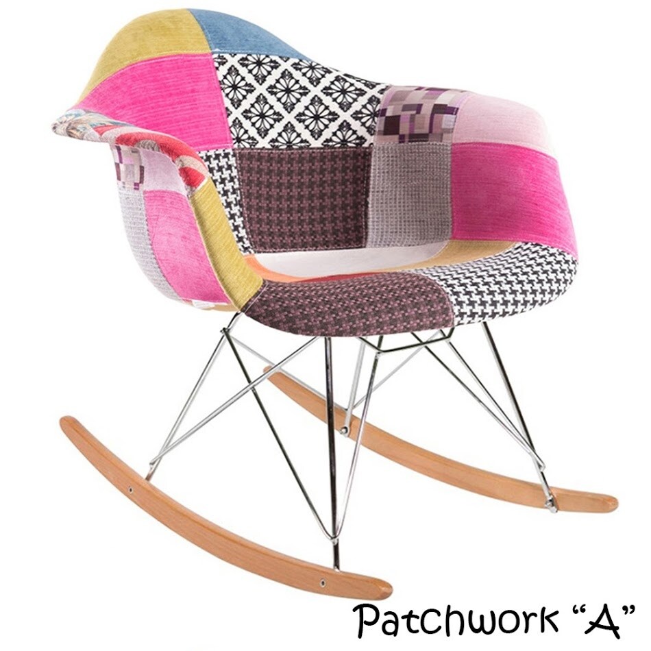 Modern Plastic Rocking Chair Armchair With Arm Patchwork Fabric Natural Wood Rockers Dining