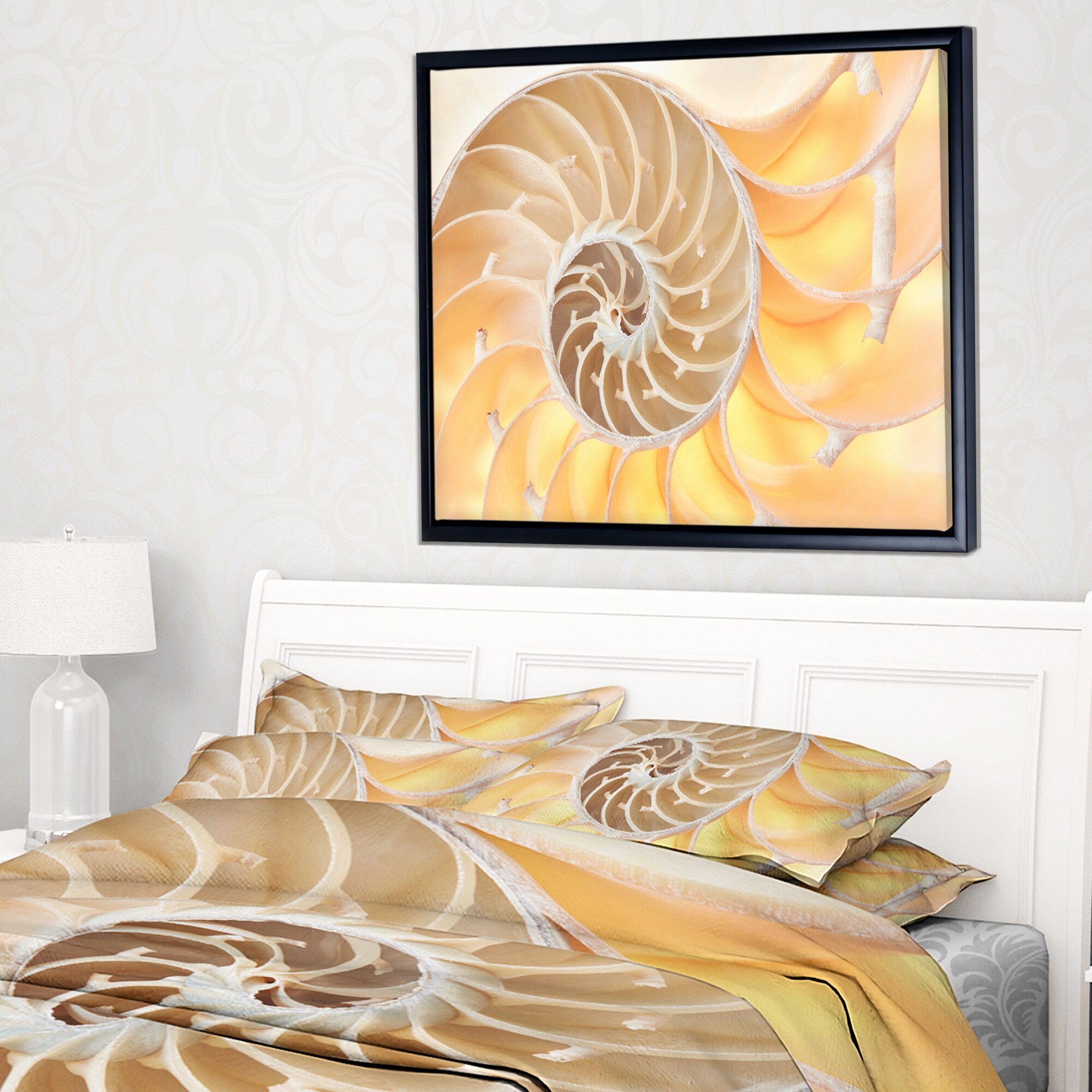 Designart "Golden Nautilus Shell Pattern" Abstract Framed Canvas Art Print