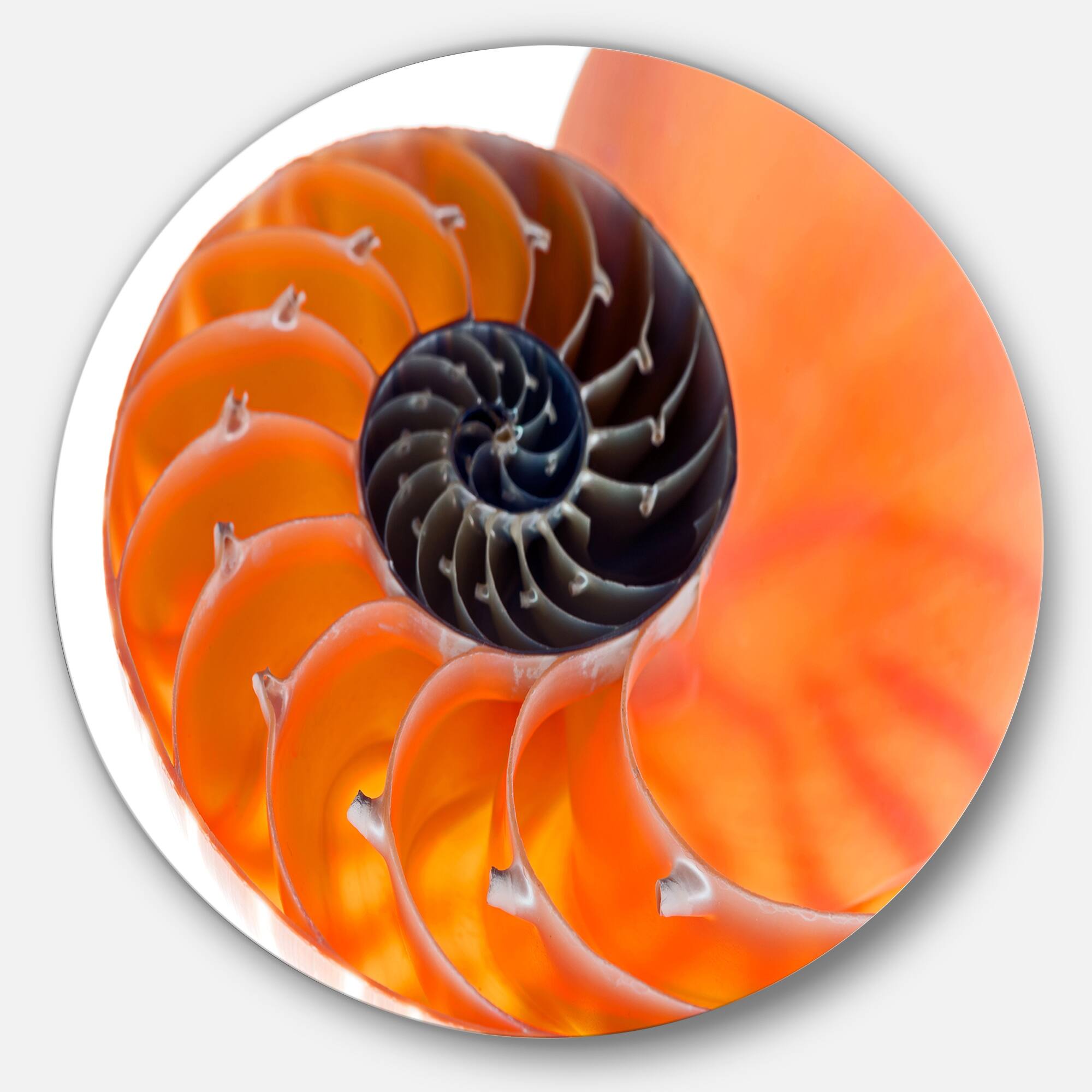 Designart 'Orange Nautilus Shell' Abstract Art Disc Metal Wall Art