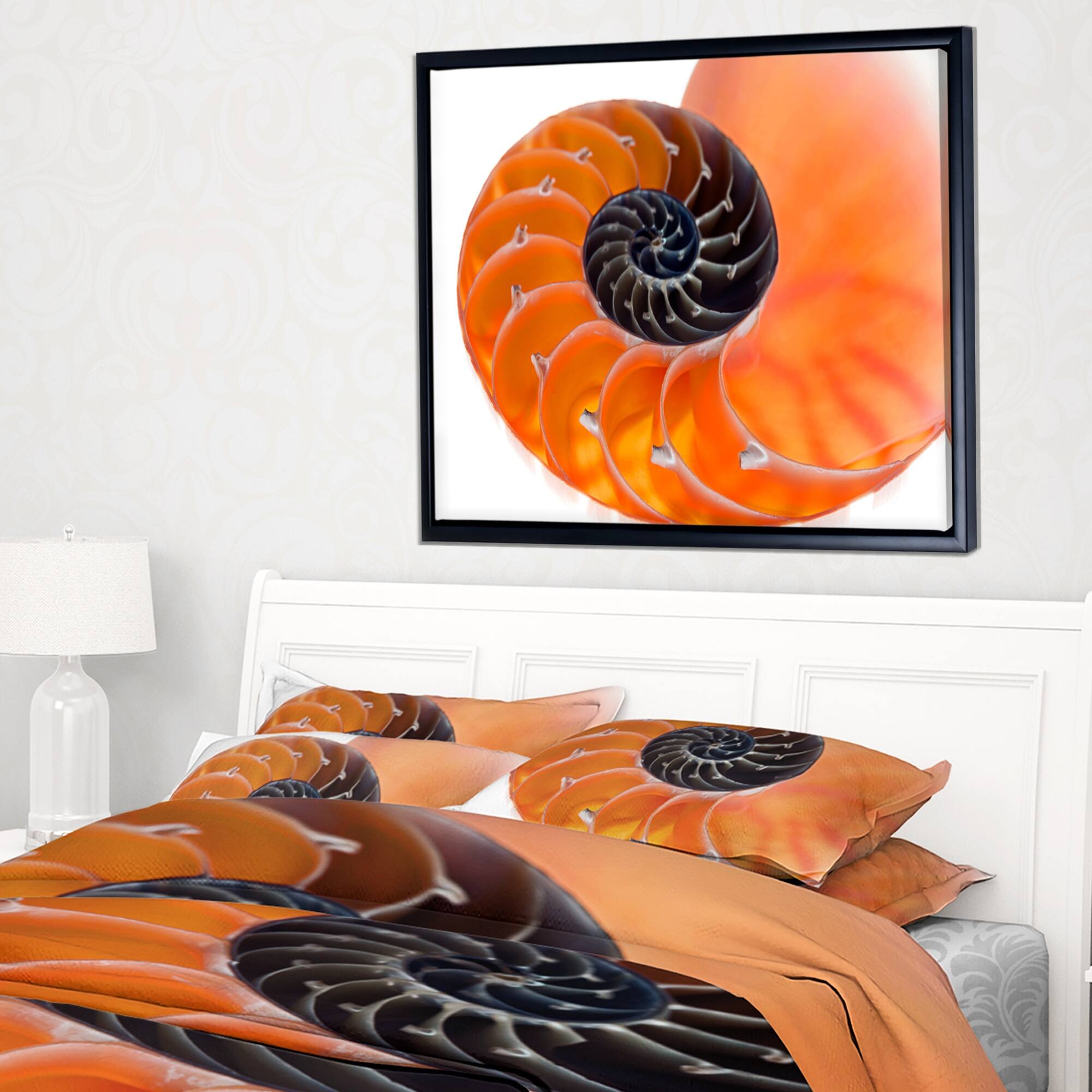 Designart "Orange Nautilus Shell" Abstract Framed Canvas Art Print
