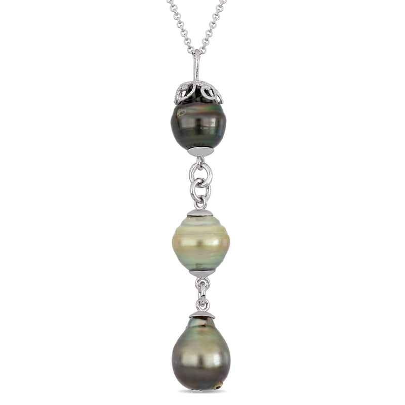 Miadora Sterling Silver Tahitian & Golden South Sea Cultured Pearl Y-Necklace (9-11mm)