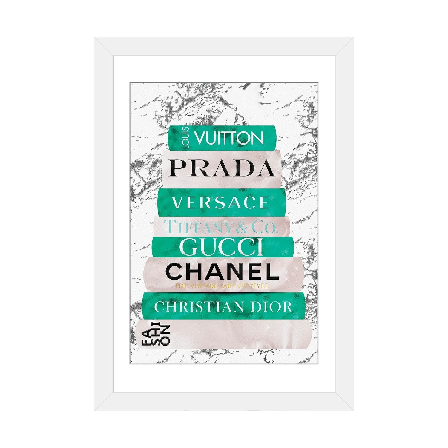 iCanvas "Fashion Nerd-Ocean Green & Beige Book Stack" by Pomaikai Barron