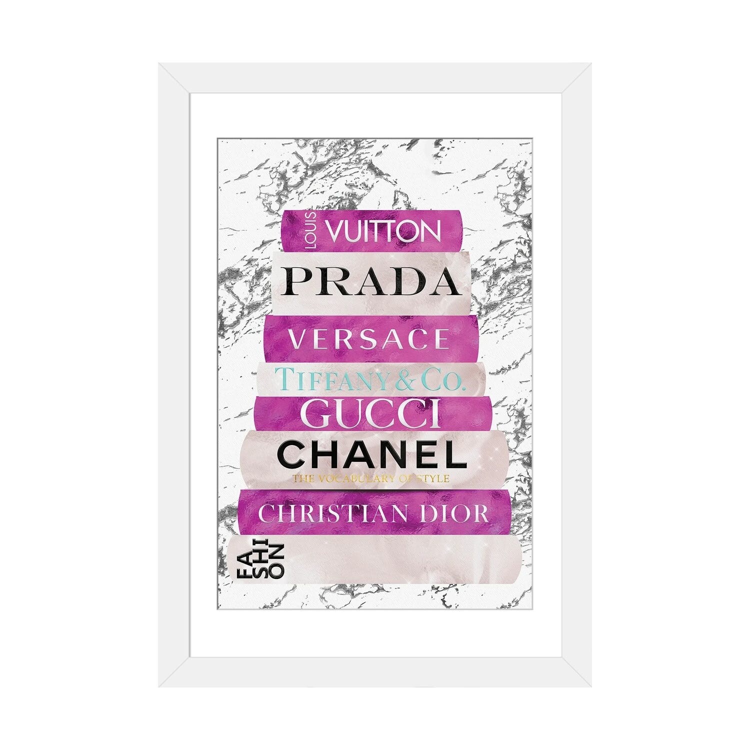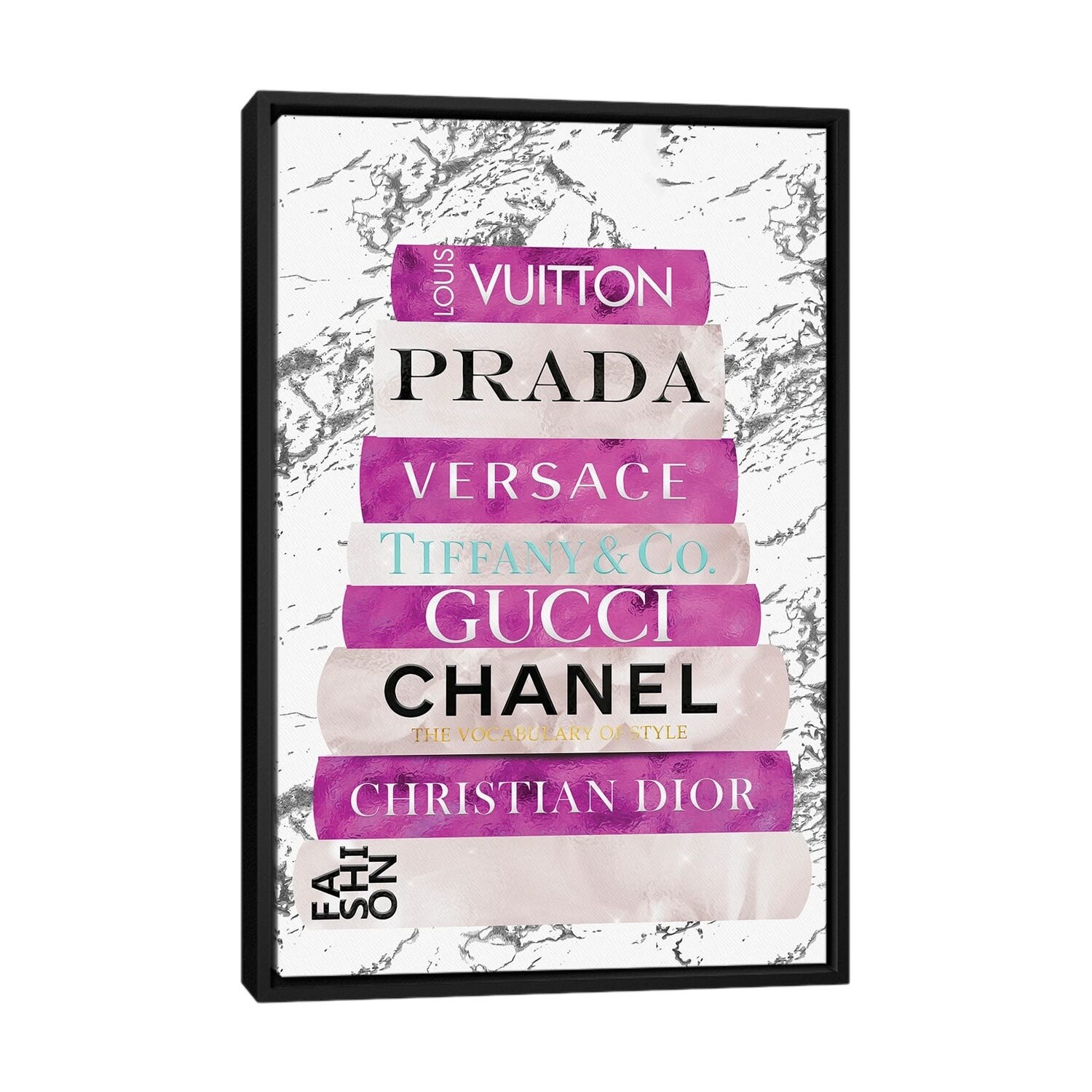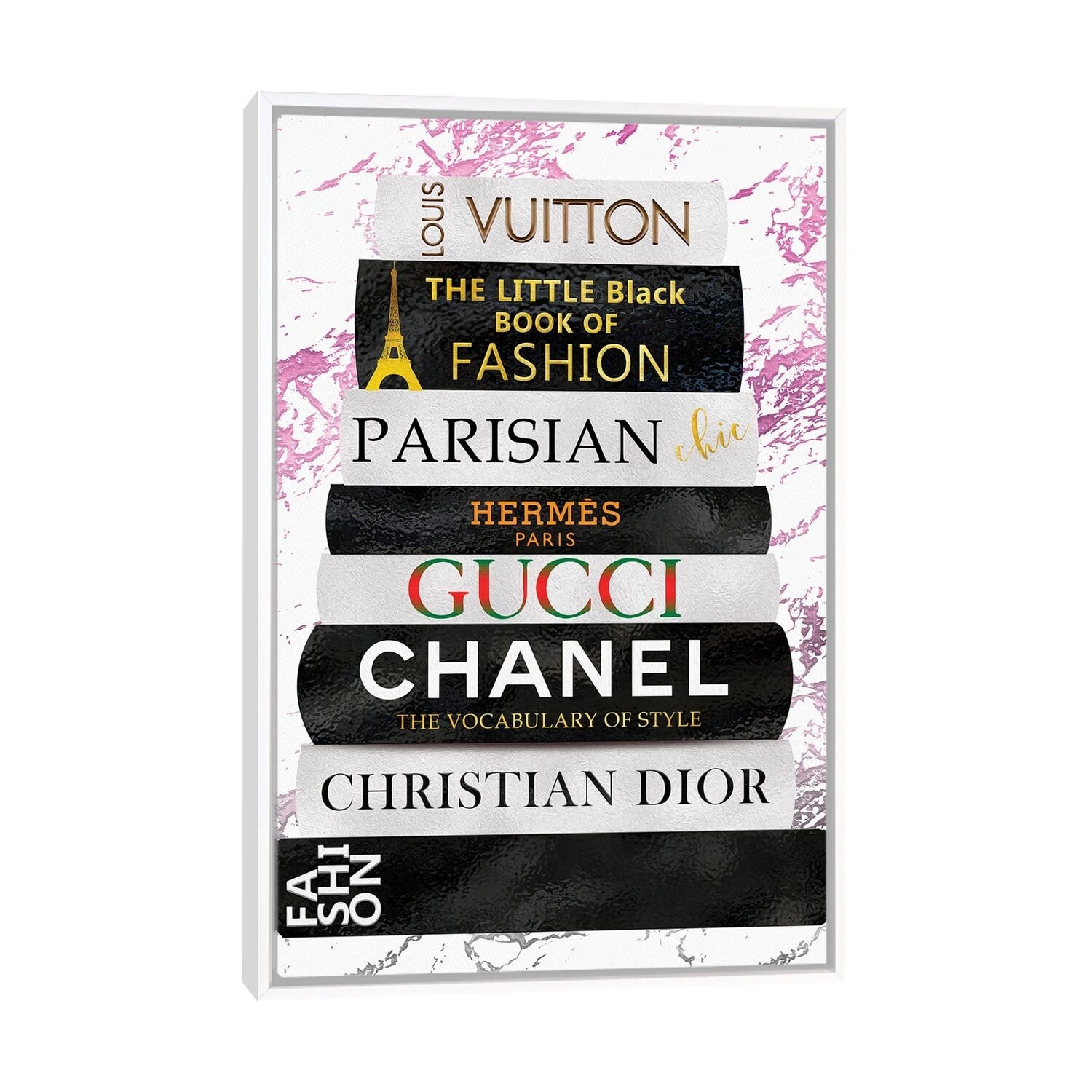 iCanvas "Fashion Nerd-Black White & Gold Fashion Book Stack" by Pomaikai Barron Framed
