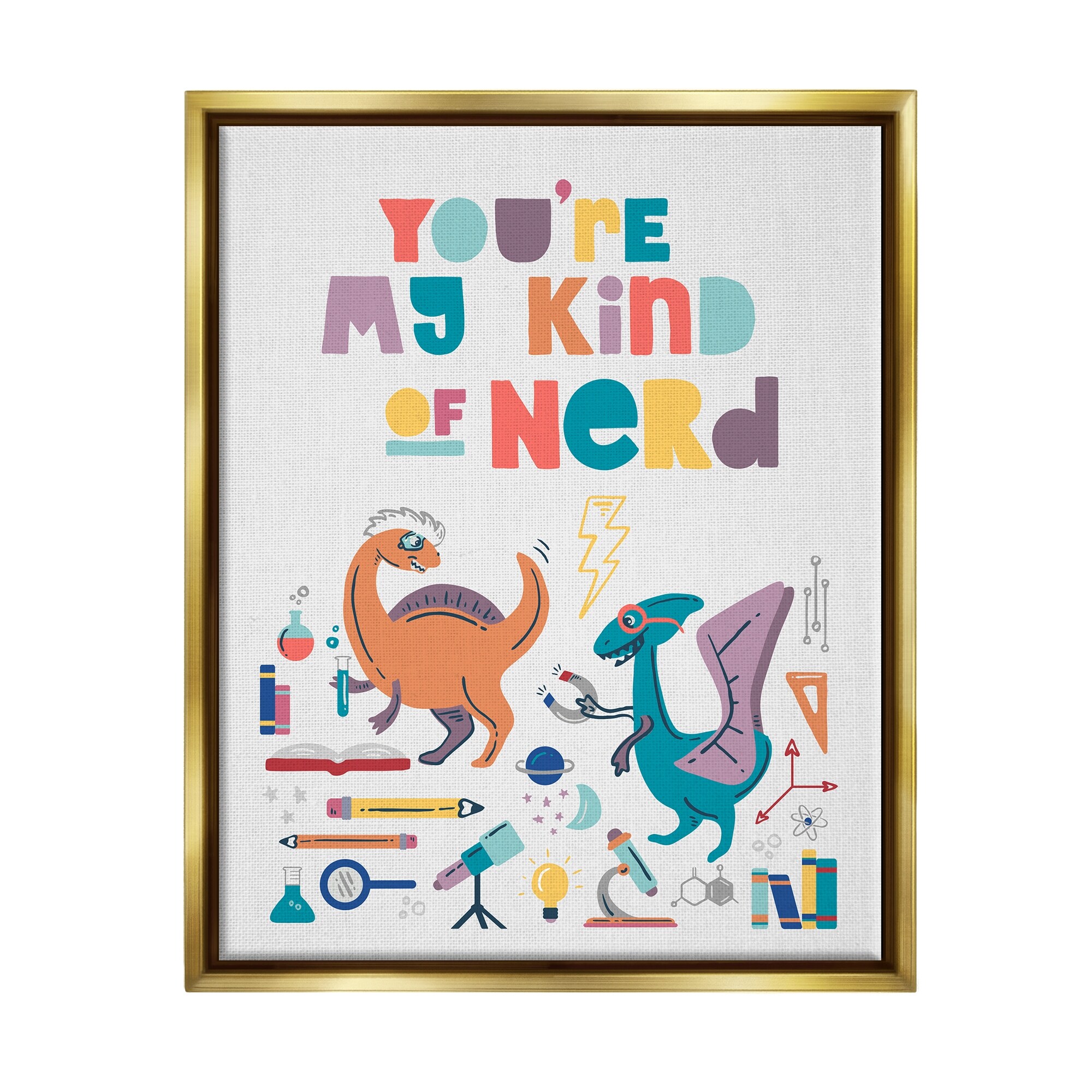 Stupell Industries You're My Kind of Nerd Dinosaurs Framed Floater Canvas Wall Art by Zirkus Design