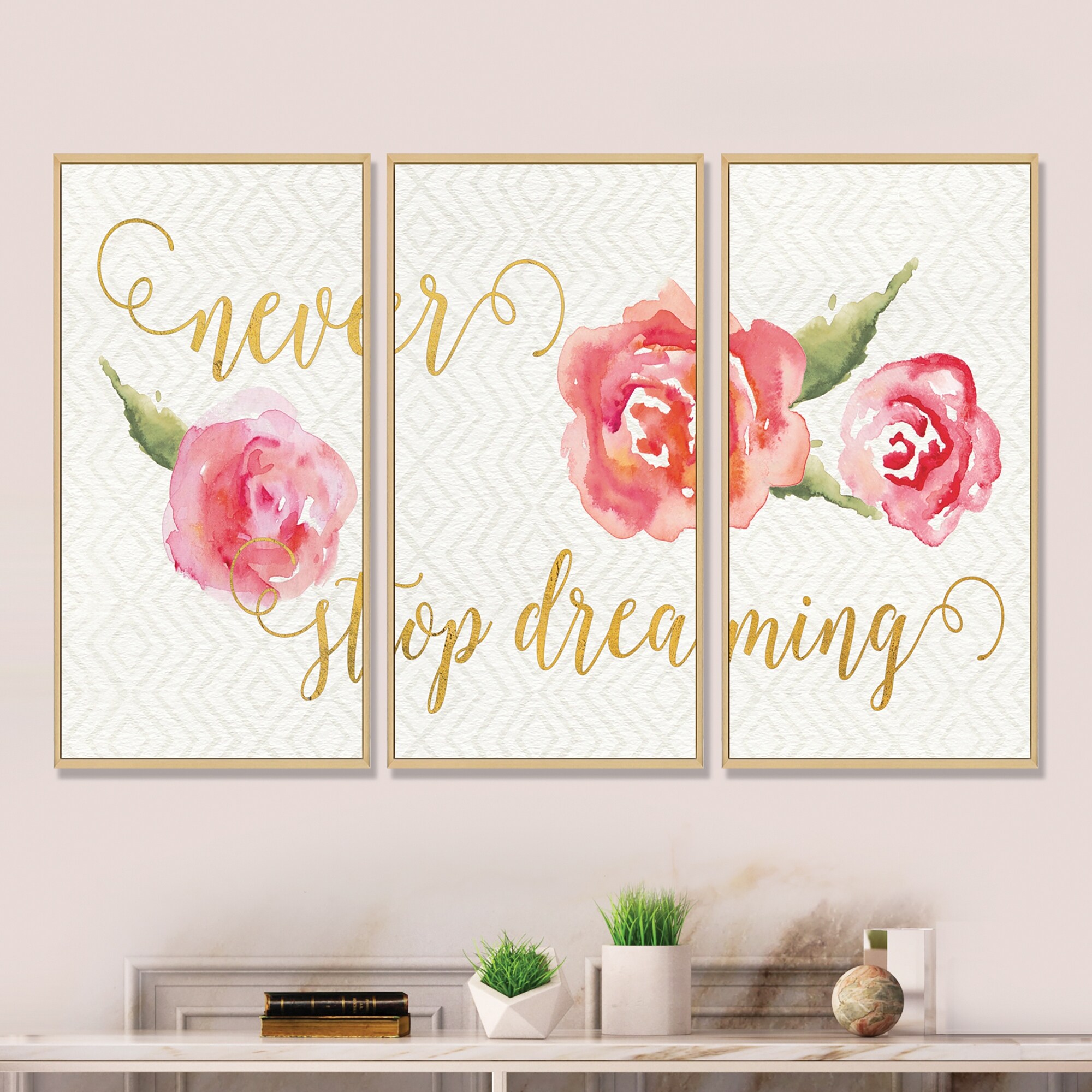 Designart "Never Stop Dreaming Gold" Shabby Chic Framed Artwork Set of 3 - 4 Colors of Frames