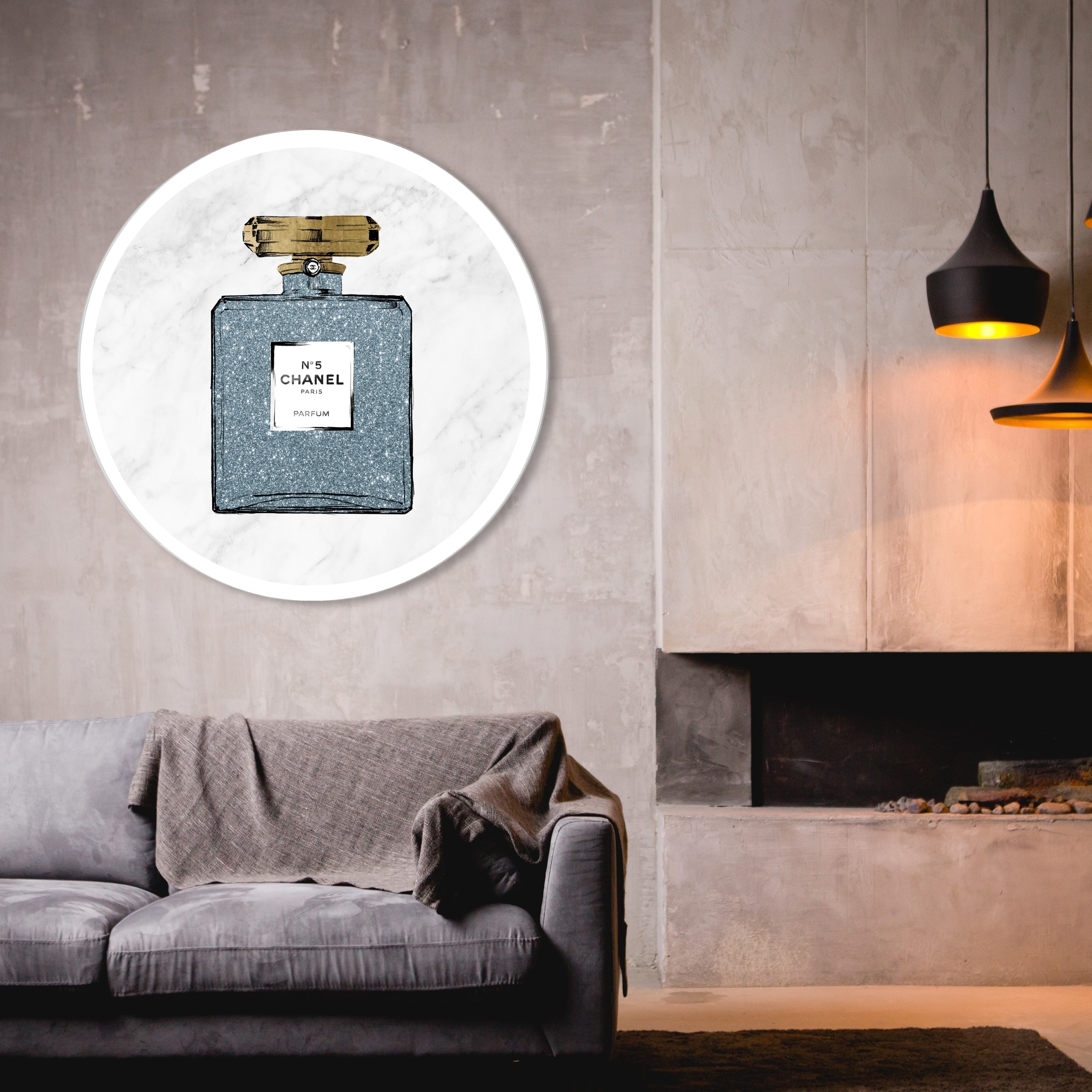 Oliver Gal 'Blue Glitter Number 5 Circle' Fashion and Glam Round Circle Acrylic Wall Art - Blue, White