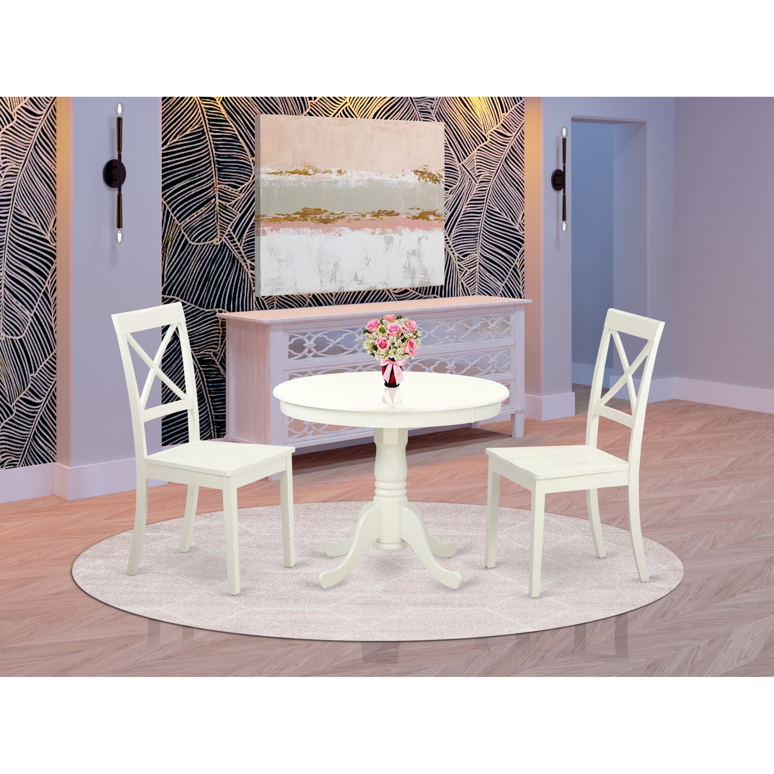 Dining Set Included Pedestal Dining Table and Wooden Chairs - Linen White Finish (Number of Chair Option)