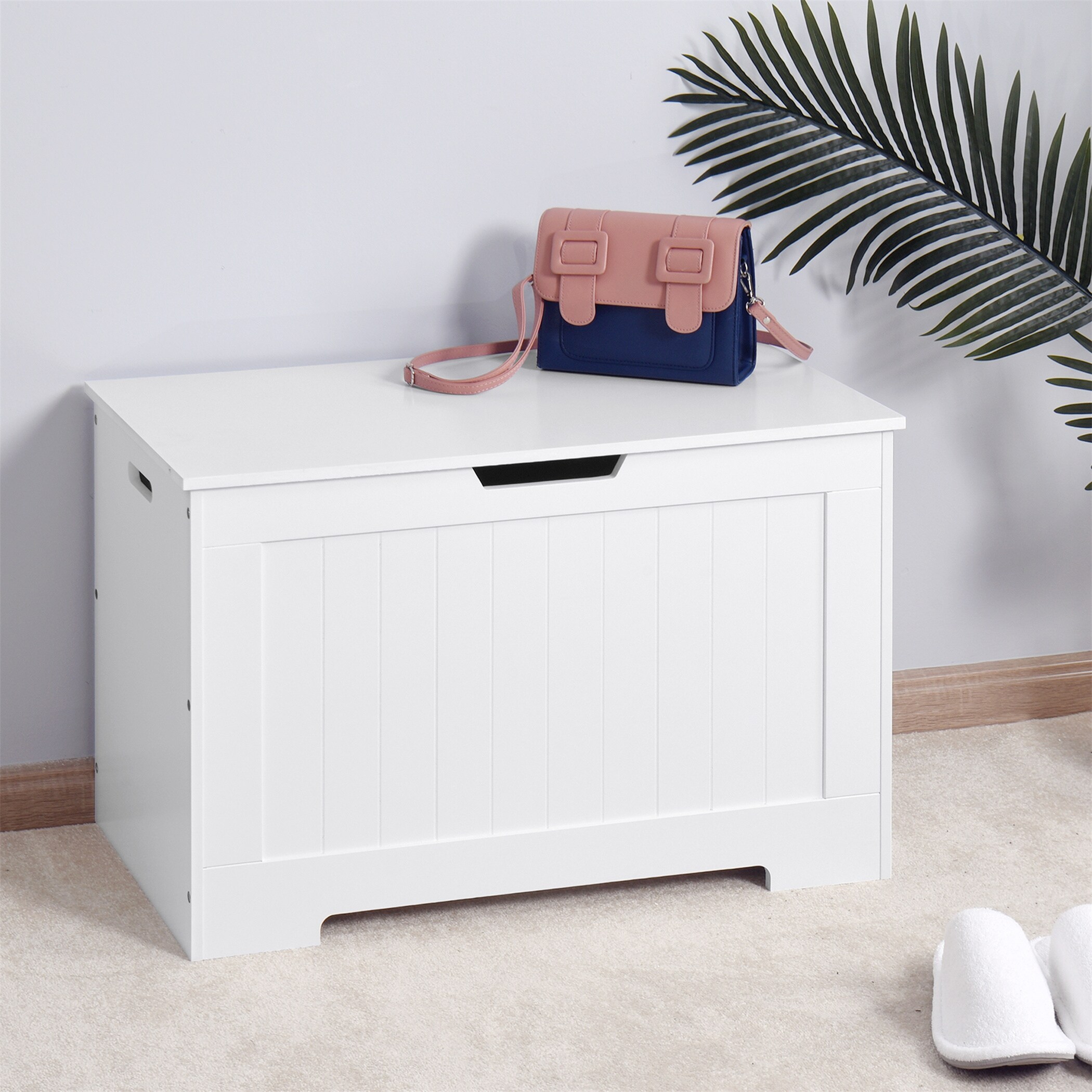 White Lift Top Entryway Storage Chest/Bench W/ 2 Safety Hinge, Wooden