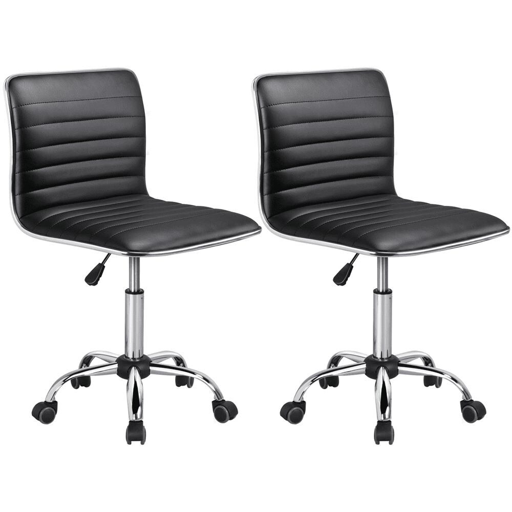 Modern Adjustable Armless Faux Leather Swivel Office Chair, Set of 2, Black