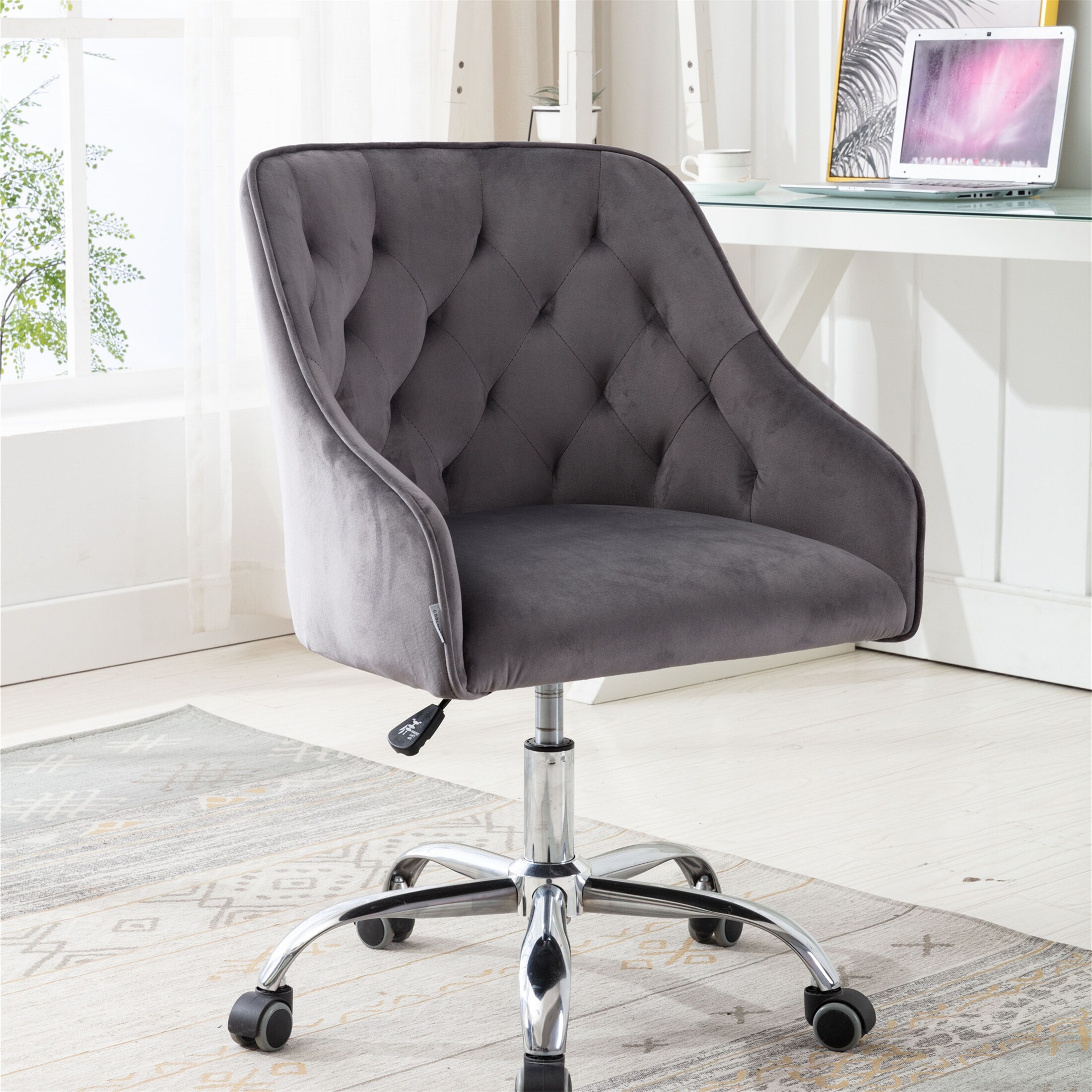 Grey Velvet Upholstered Home Office Chair