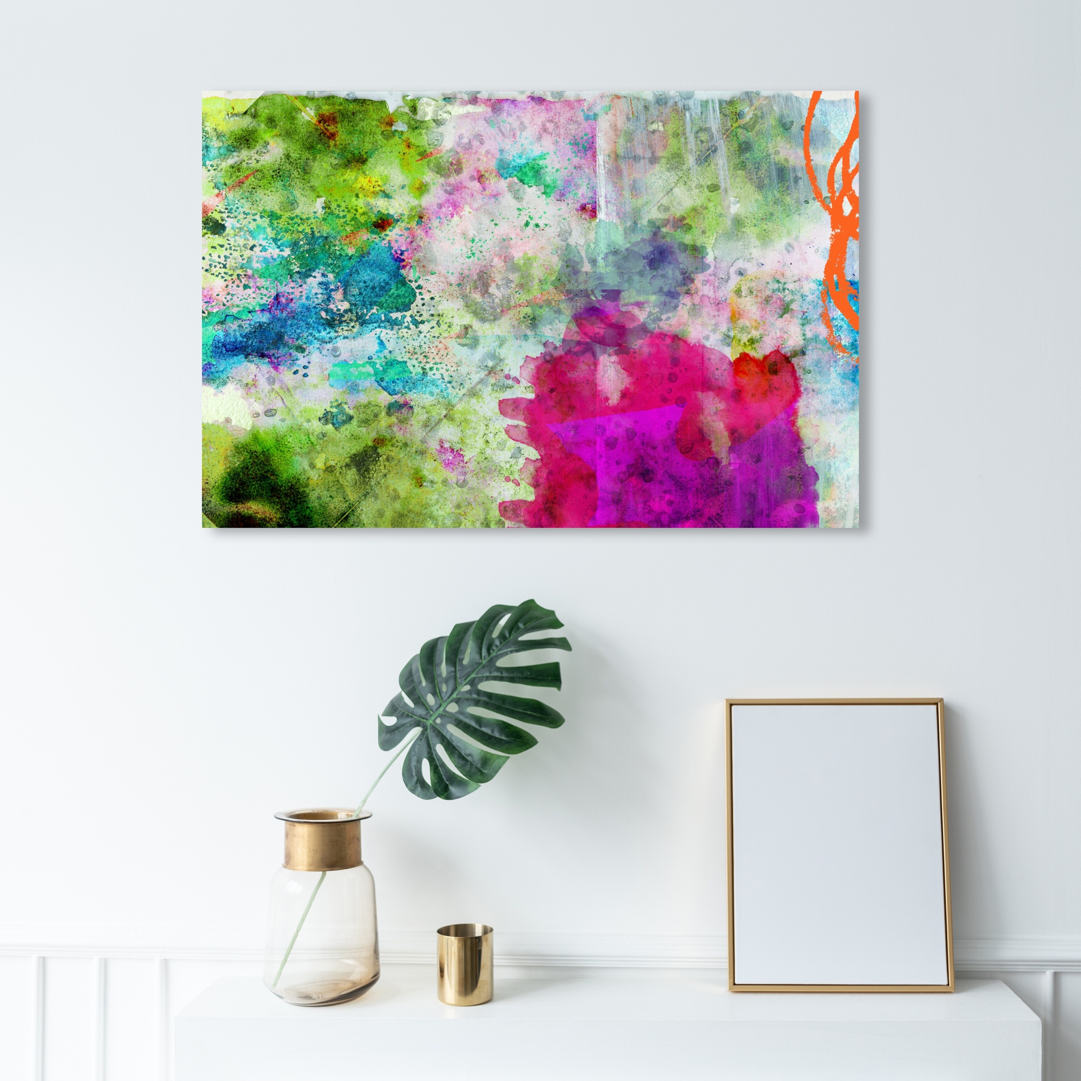 Oliver Gal 'Rose Gold Garden' Abstract Wall Art Framed Canvas Print Watercolor - Orange, Green