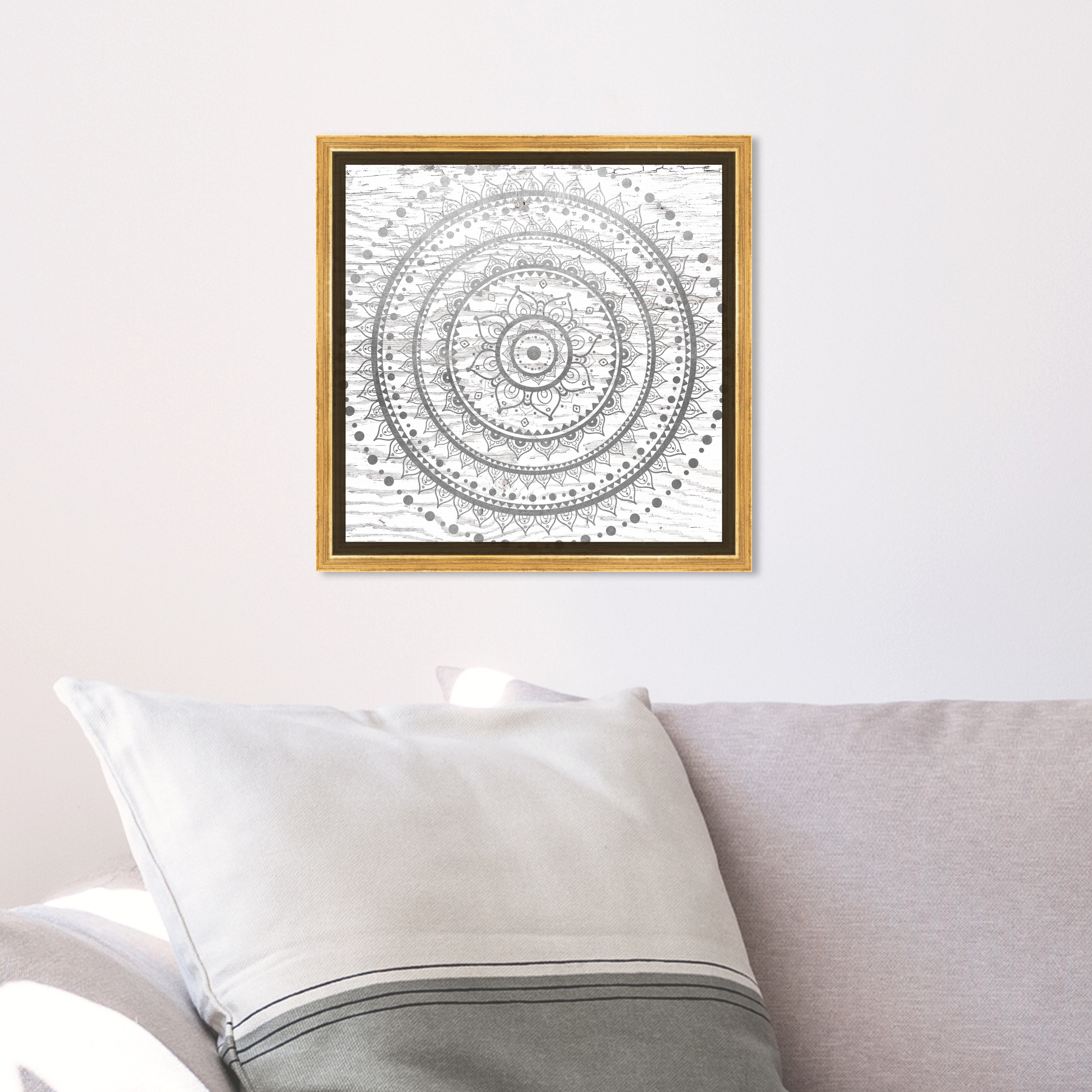 Oliver Gal 'Silver Mandala Wood' Abstract Wall Art Framed Canvas Print Patterns - Gray, White