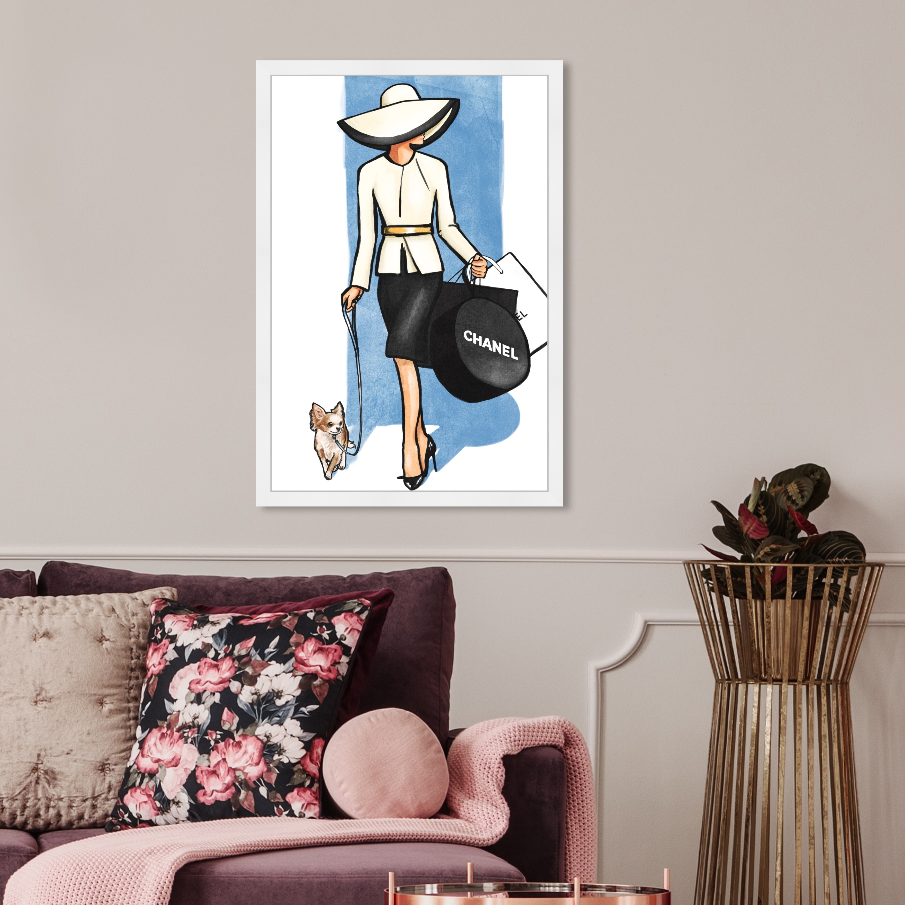 Oliver Gal 'Go For a Walk' Fashion and Glam Wall Art Framed Print Outfits - White, Blue