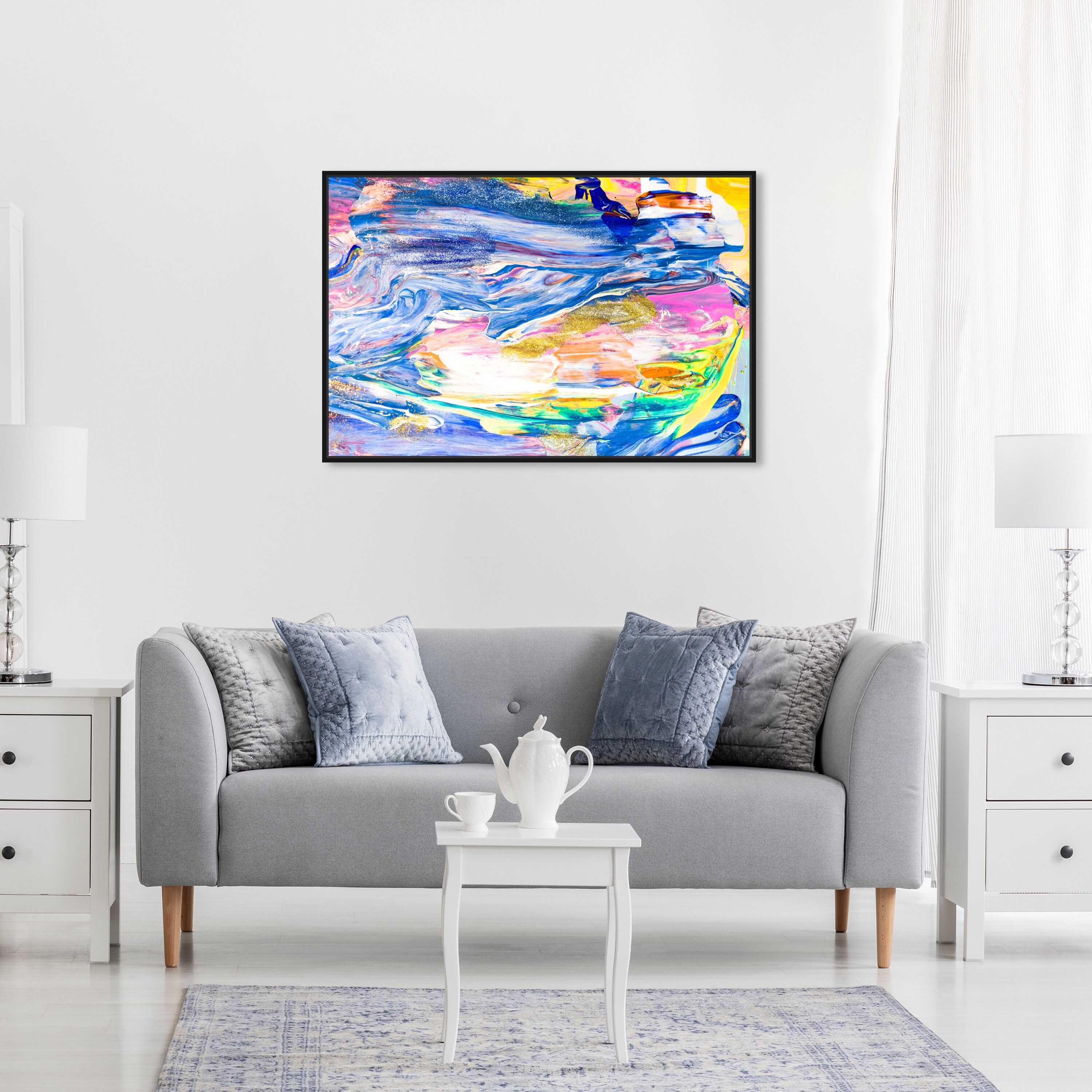 Oliver Gal 'Pull Up in a Lemon' Abstract Wall Art Framed Canvas Print Paint - Blue, Gold