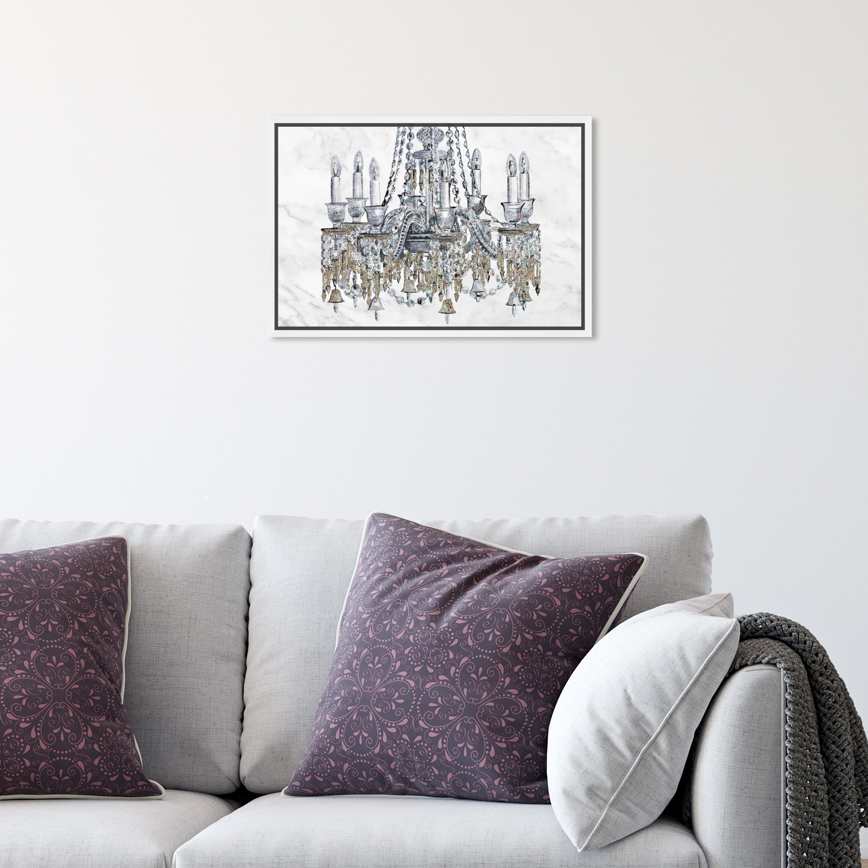 Oliver Gal 'Glitter Crystal Chandelier' Gray Wall Art Canvas Print