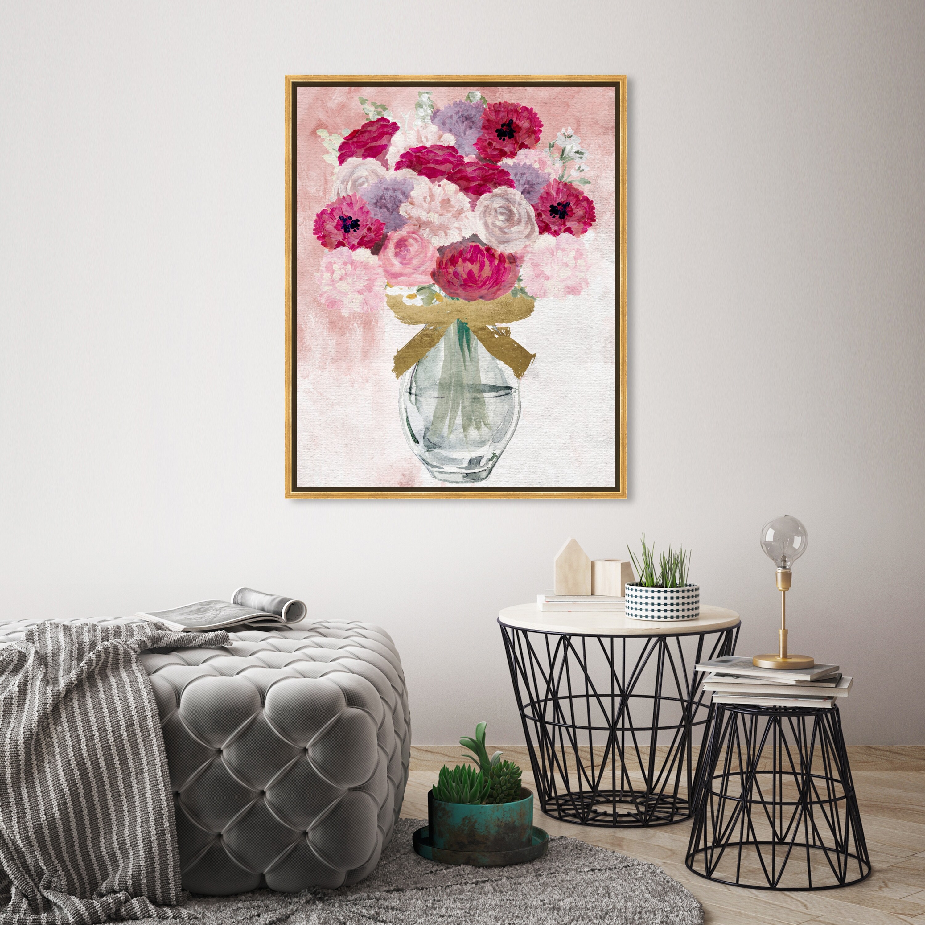 Oliver Gal 'Glam Floral Bouquet in Flamingo Base' Framed Canvas Art Print