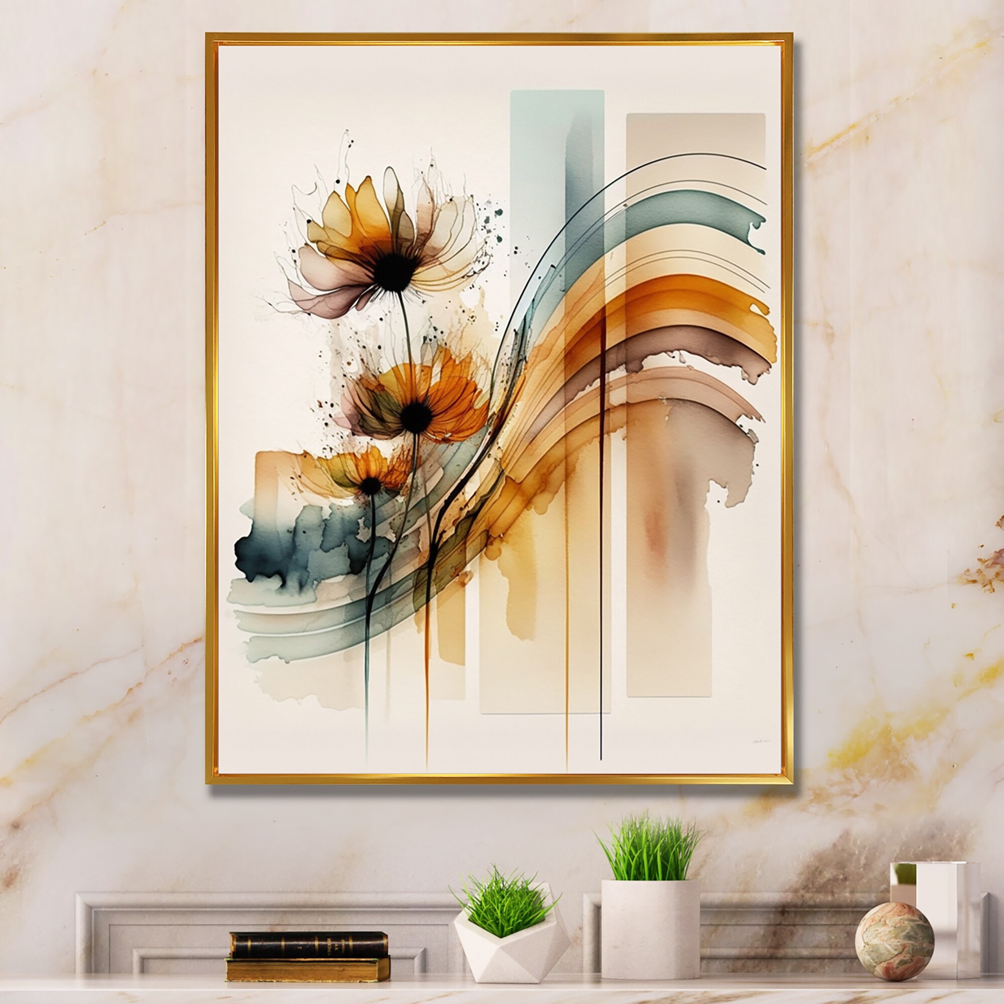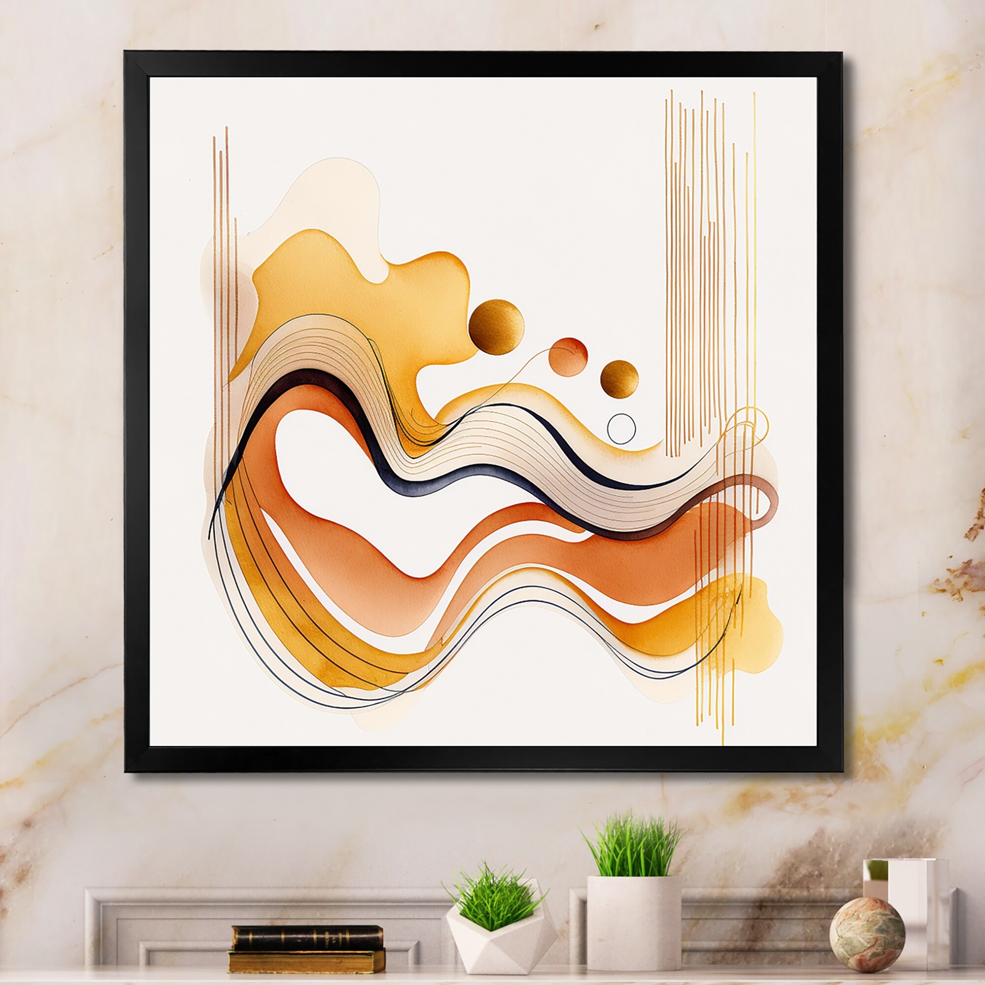 Designart "Burnt Orange Waves Abstract III" Modern Framed Art Print