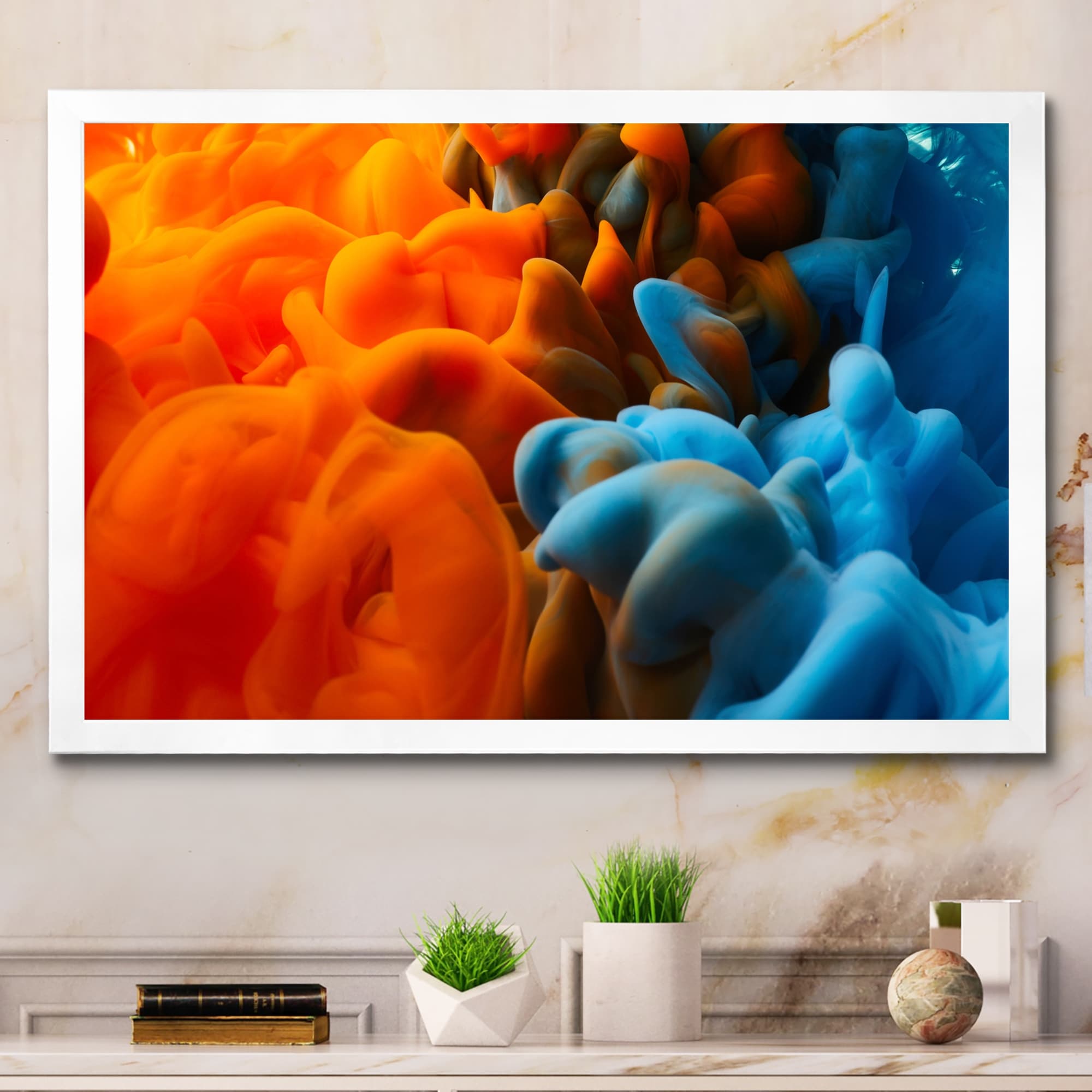 Designart "Orange And Blue Fluid Ink Art" Modern Framed Wall Decor