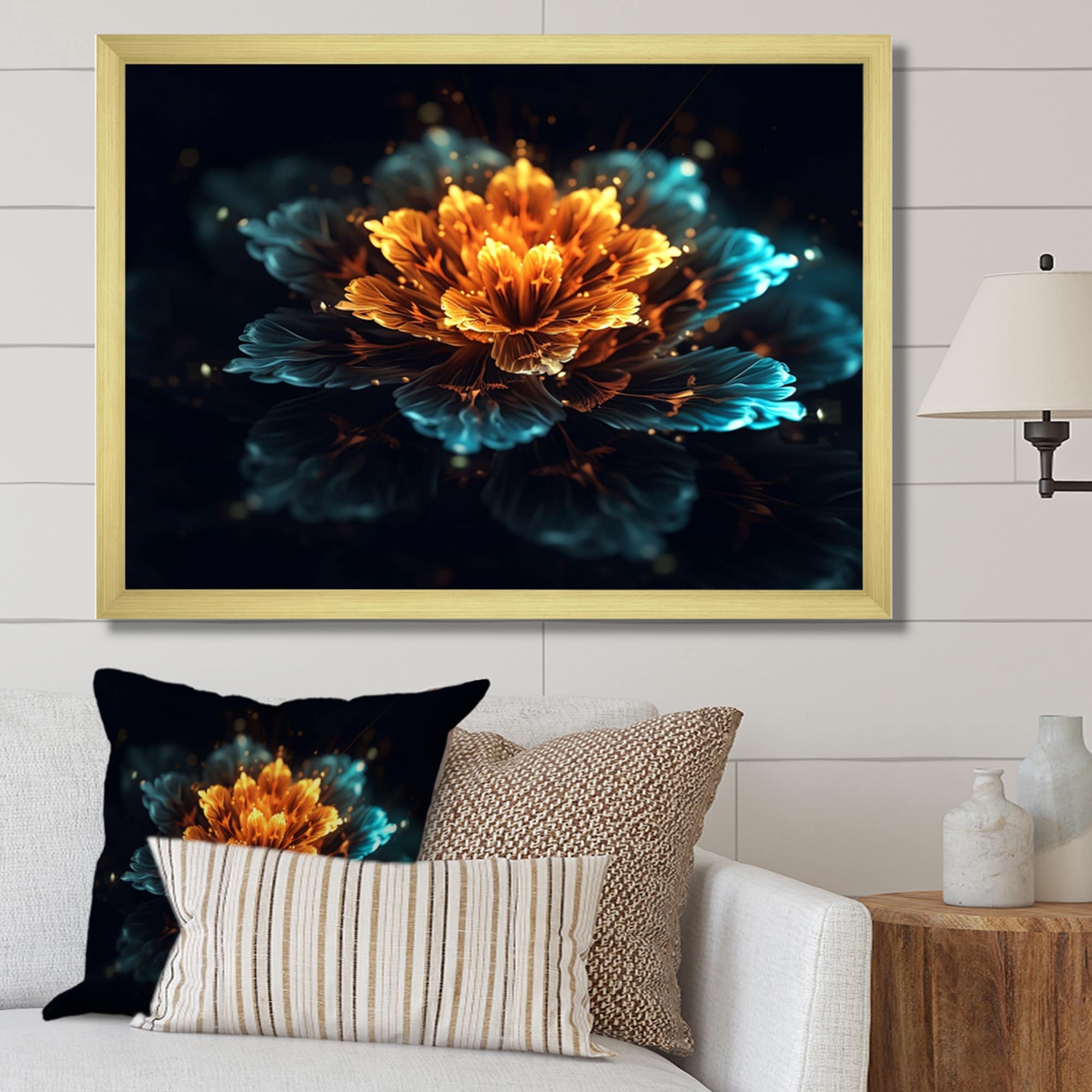 Designart "Orange Sacred Lotus Floral Bloom I" Floral Lotus Framed Wall Art for Living Room