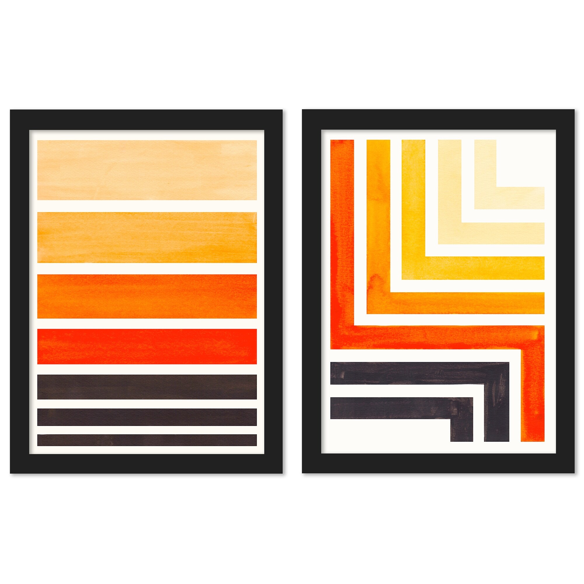 Orange Staggered Stripes 2 Piece Black Framed Print Wall Art Set