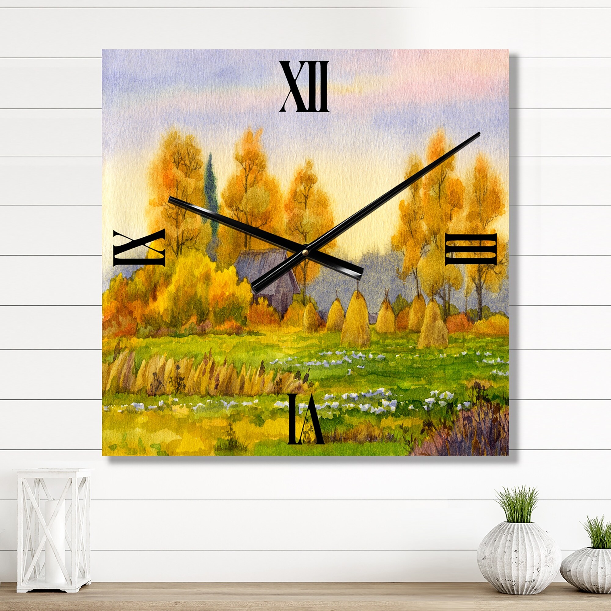 Designart 'Haystacks On Orange Fields II' Lake House Large Wall Clock